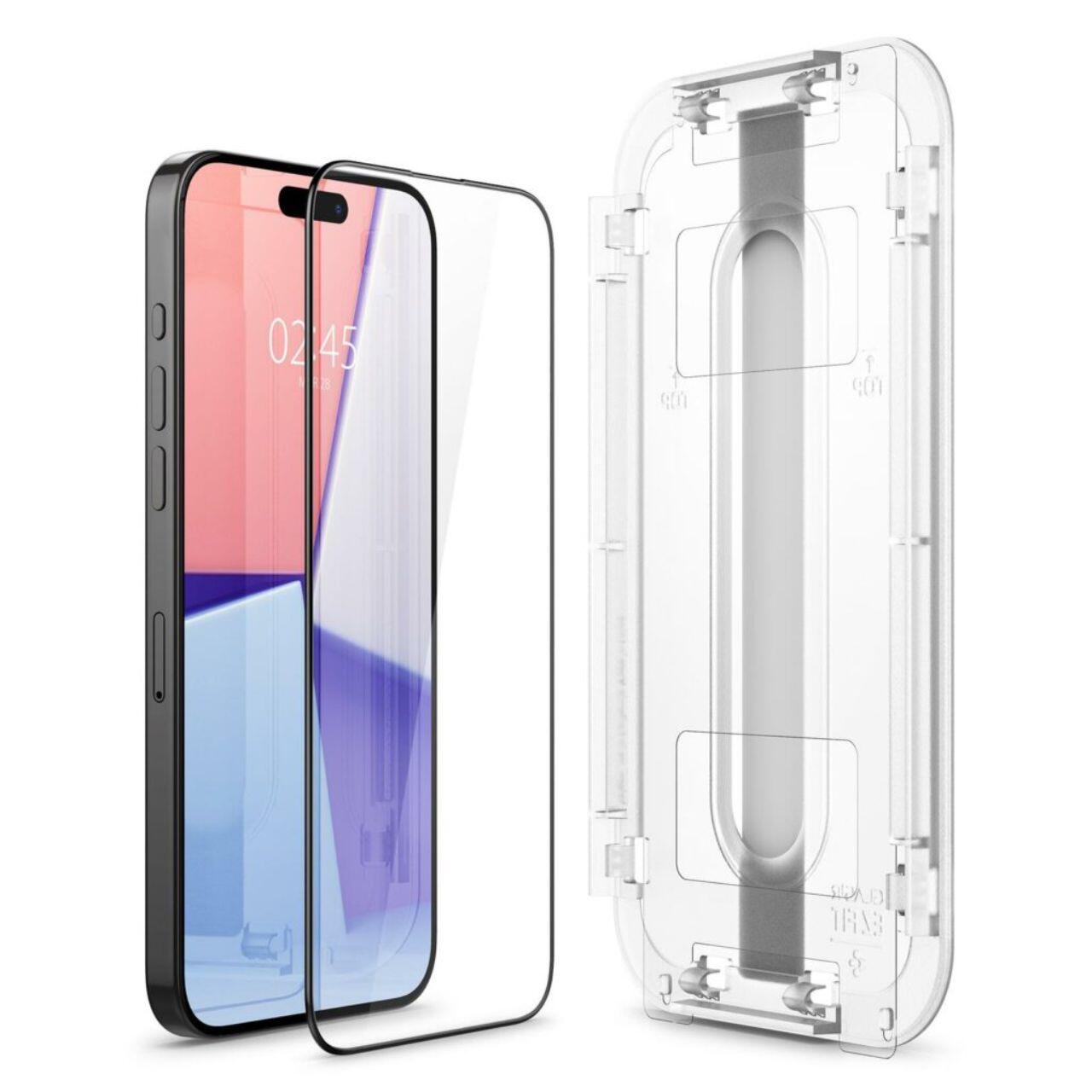 Spigen Folie Sticla Glass tR EZ Fit iPhone 15 Pro Max, set 2 buc, kit de montare, Black