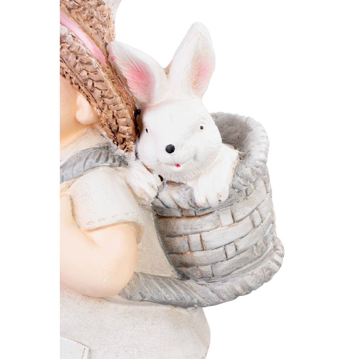 Decoratiune gradina, MagicHome, ceramica, baiat cu iepuras, 23.5x18x48 cm