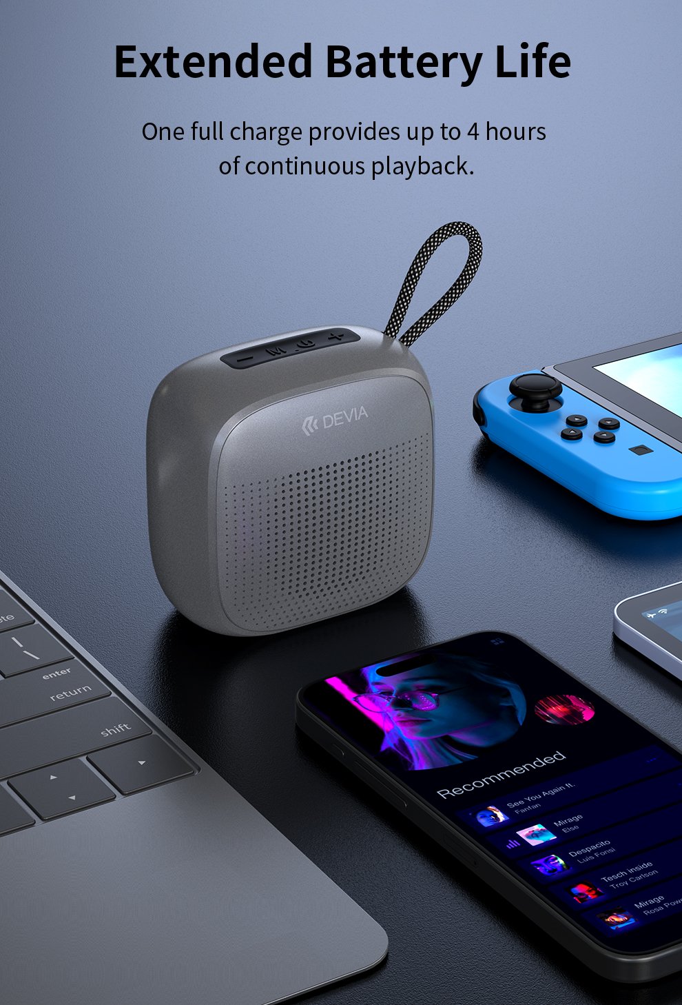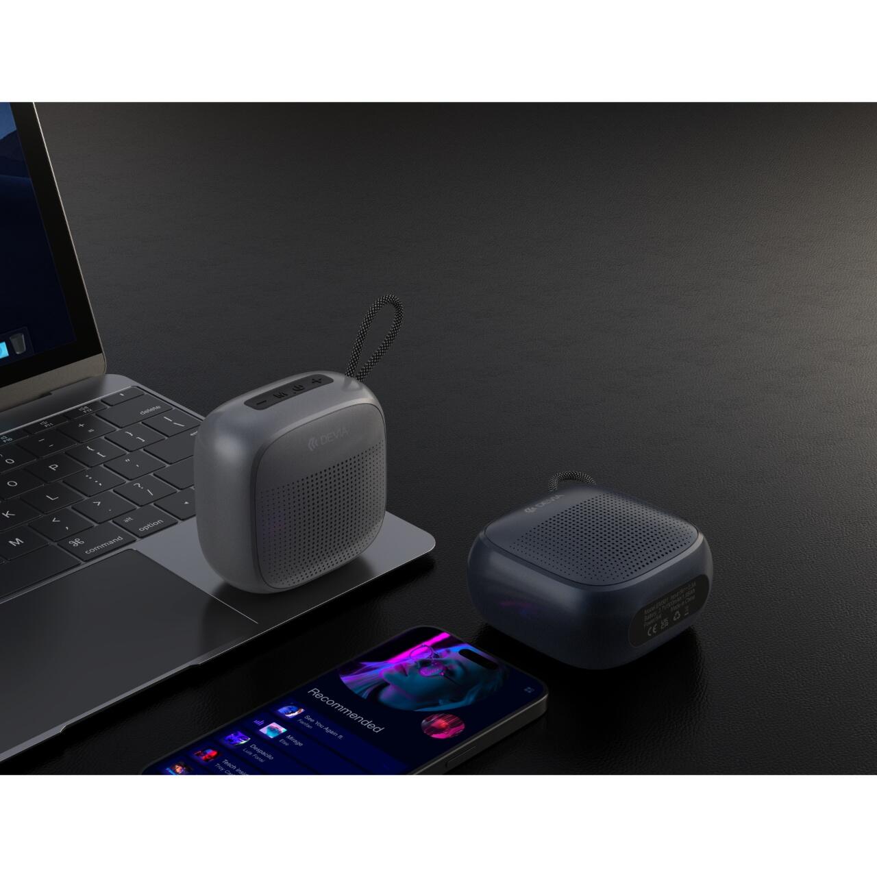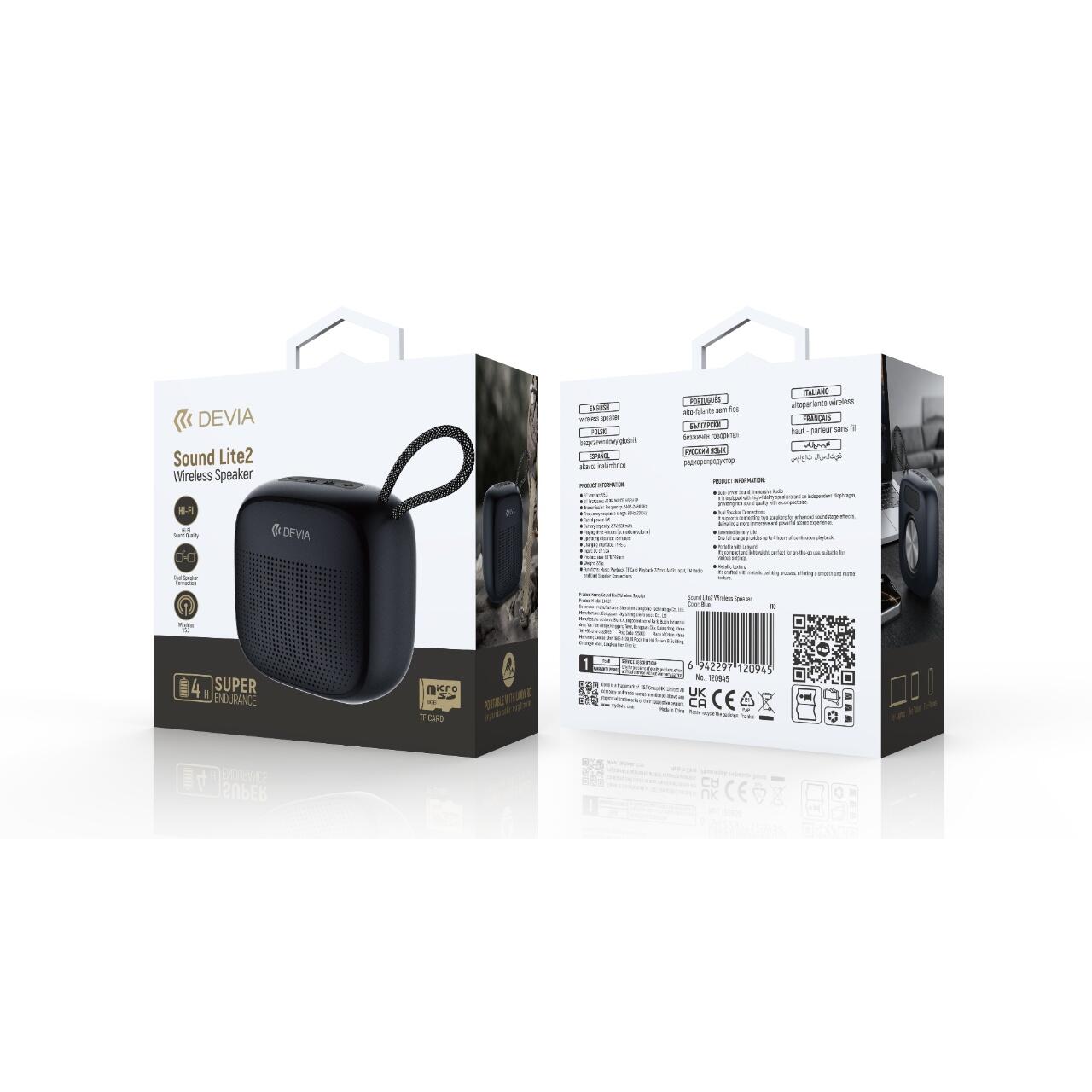 Sound Lite2 de la Devia este o boxa wireless portabila cu Bluetooth 5.3, care ofera un sunet puternic si dinamic, intr-o design compact pentru a incapea in mana, potrivita pentru ascultarea in mers. In plus, cu ajutorul conexiunii wireless, boxa ofera posibilitatea conectivitatii cu alte doua difuzoare pentru a crea un sistem stereo miniatural si portabil.
