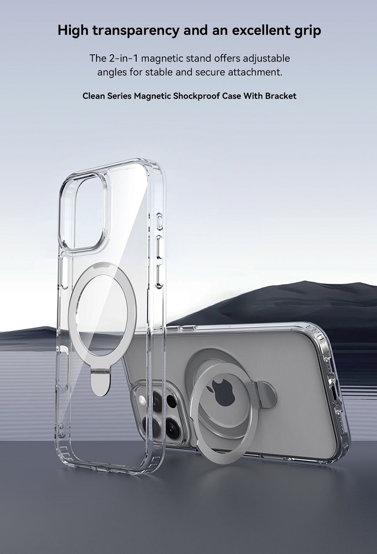 Husa Clean Series Magnetic Shockproof iPhone 16 Pro Max cu suport de la Devia, combina stilul, durabilitatea si functionalitatea intr-un design elegant. Fabricata din materiale durabile (TPU si PC), aceasta husa ofera o absorbtie superioara a socurilor pentru a va proteja telefonul de caderi si lovituri.