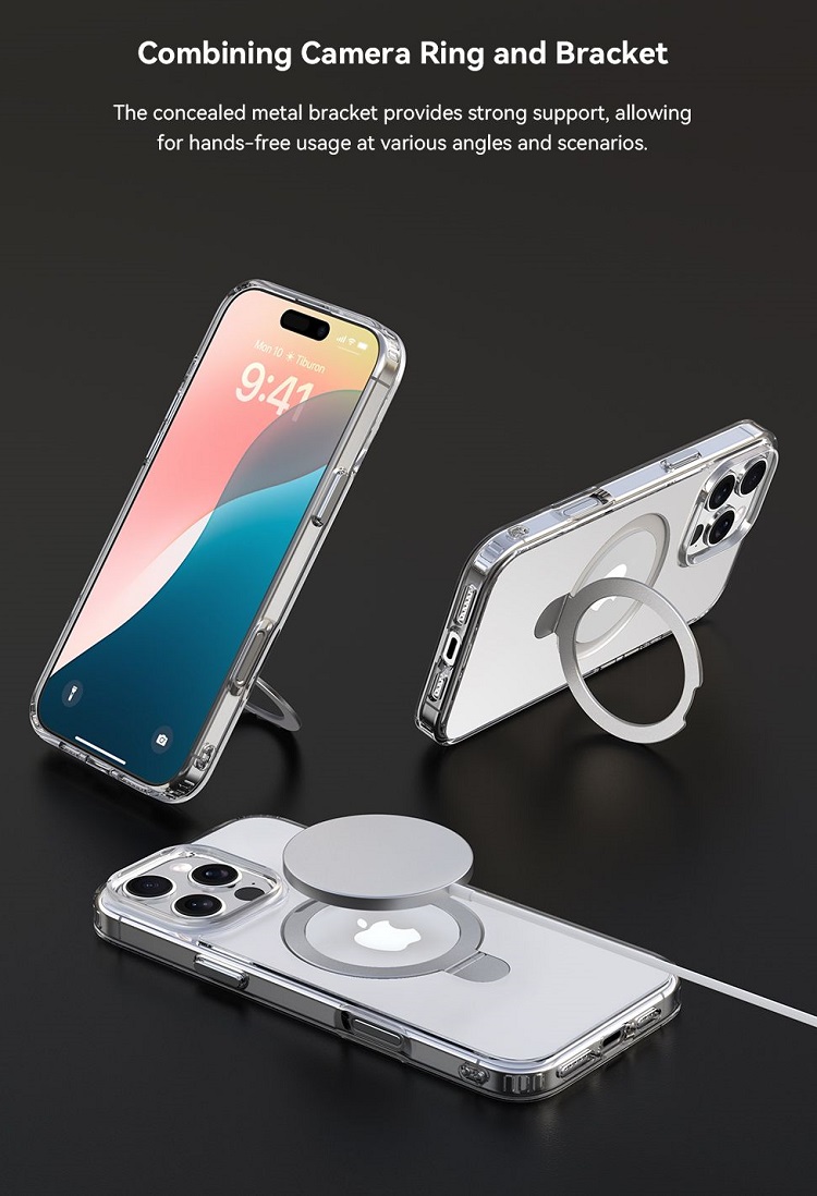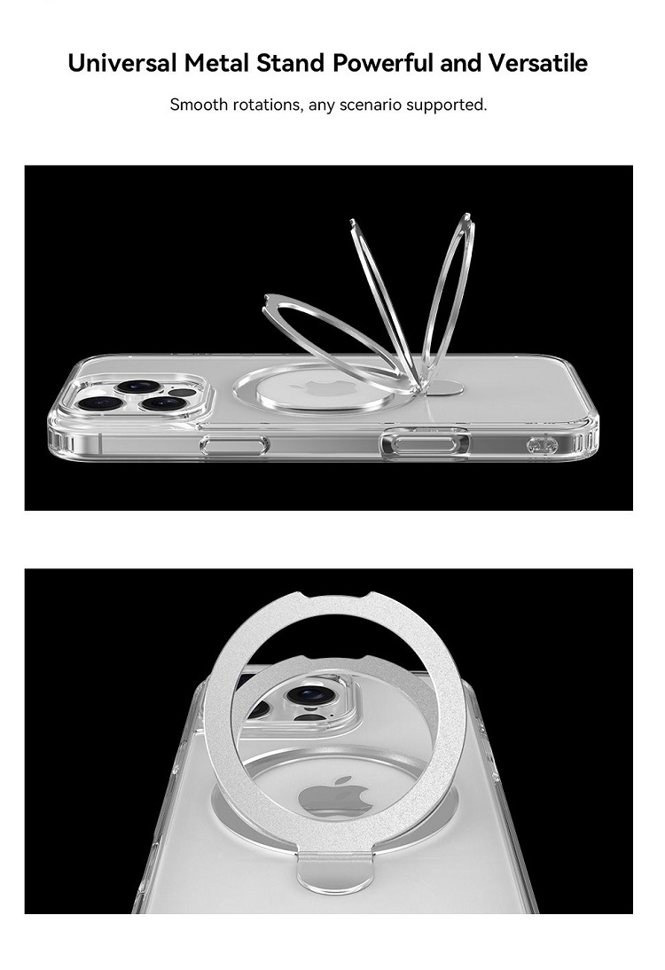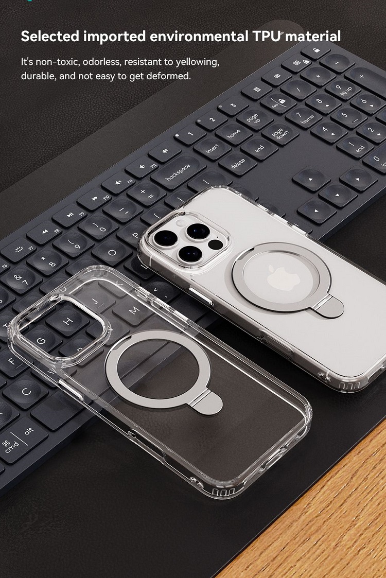 Functia sa magnetica incorporata permite o compatibilitate perfecta cu suporturile magnetice, in timp ce un suport durabil faciliteaza vizualizarea fara maini. Husa este transparenta si arata aspectul telefonului tau, pastrandu-l elegant si protejat.