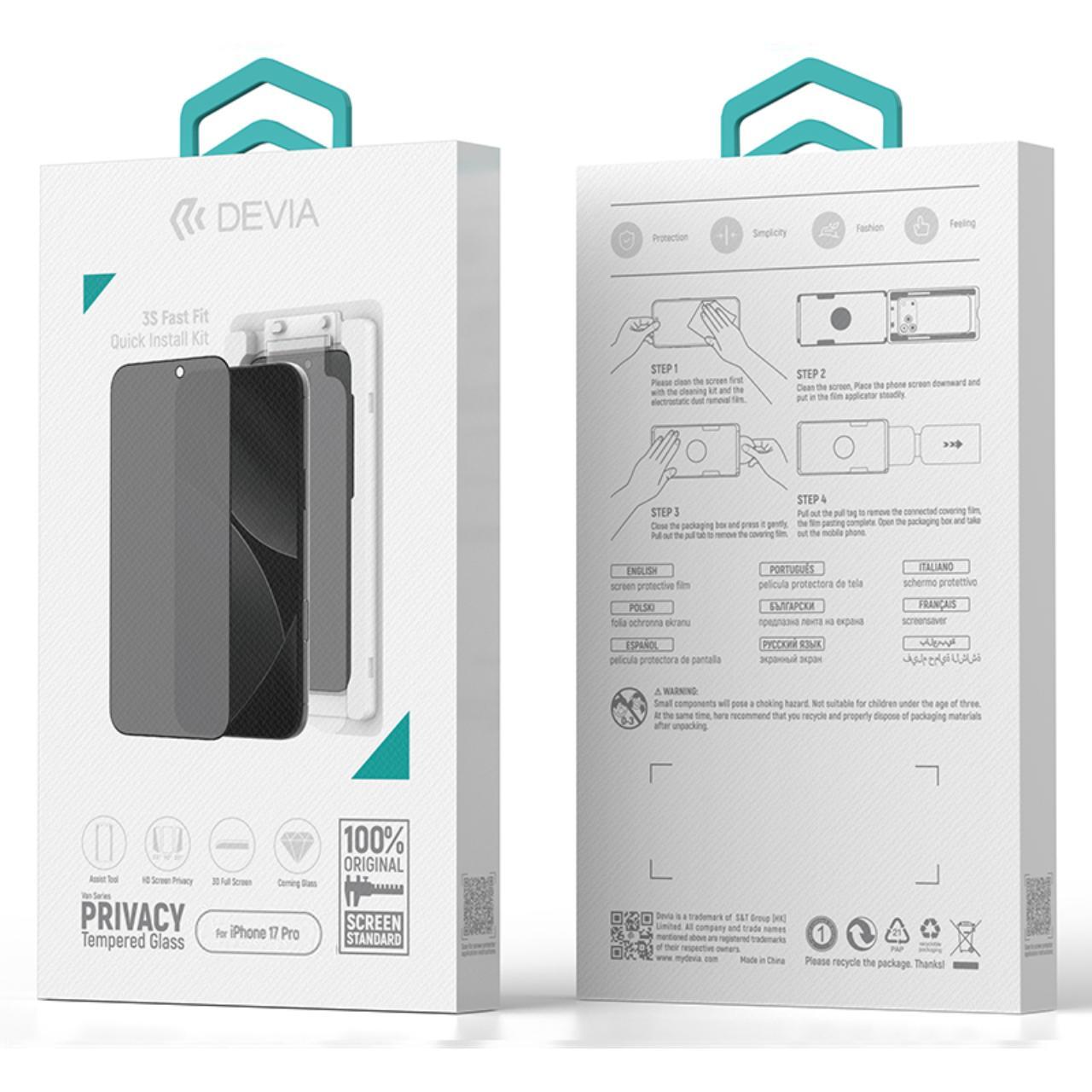 Devia Folie Sticla Privacy premium cu aplicator inclus Van Series, Full Screen, iPhone 17 Pro