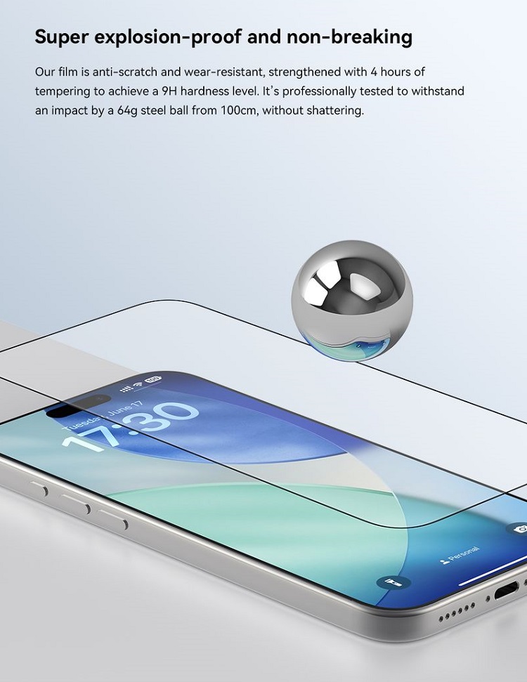 Folie Sticla Star Series Full Screen HD iPhone 17, pachet de 10 buc de la Devia, este o folie din sticla temperata (securizata), rezistenta la zgarieturi si socuri. Ofera protectie de lunga durata si acopera ecranul in totalitate. Rama neagra discreta se aliniaza perfect cu designul dispozitivului, iar stratul oleofobic previne amprentele si petele.