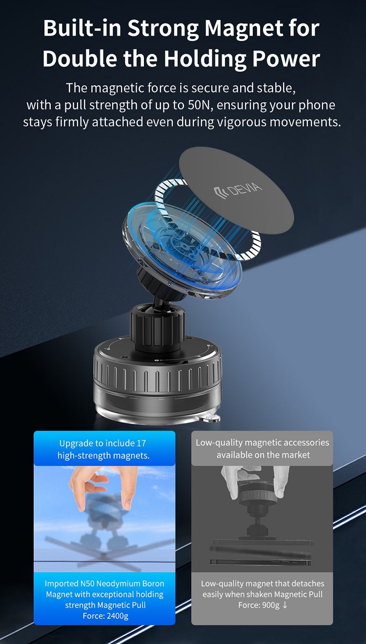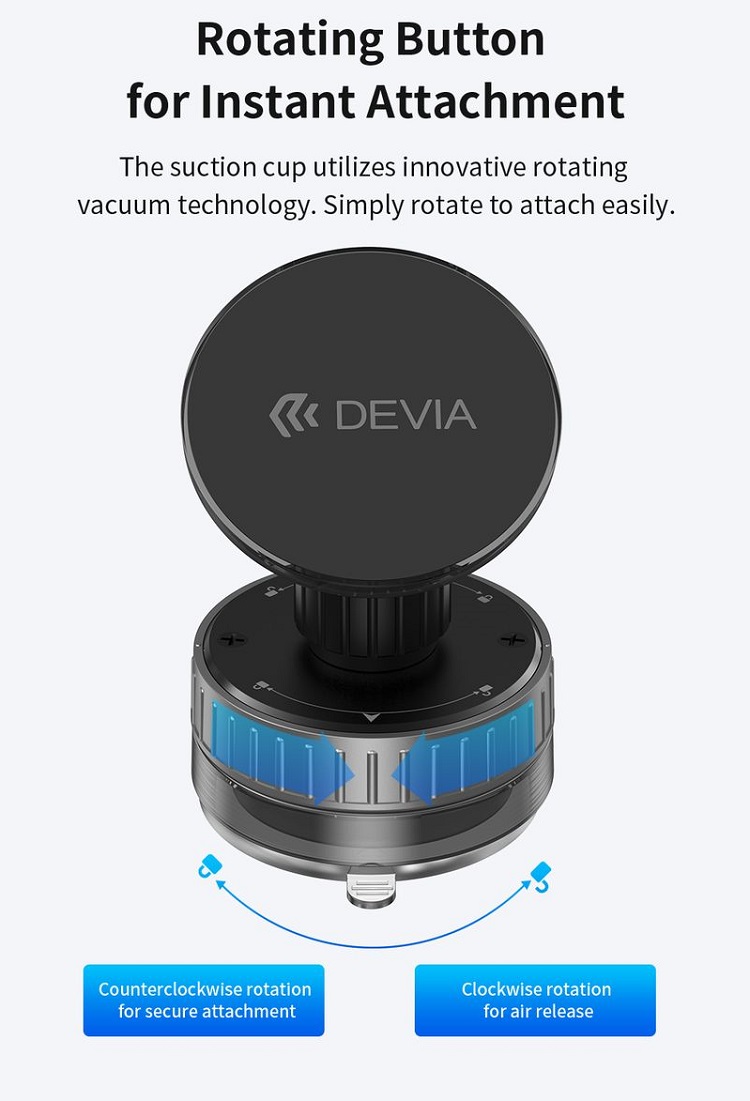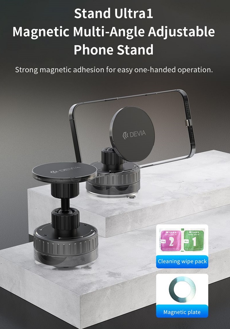 Devia Suport Magnetic Stand Ultra1, rotatie 360 grade, prindere ventuza, Negru