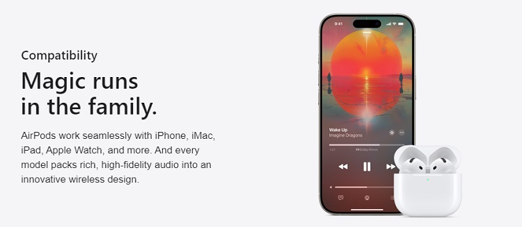Sunet spatial personalizat cu urmarirea dinamica a capului, sunetul in jurul tau, creand o experienta de ascultare asemanatoare unui cinematograf pentru muzica, emisiuni TV, filme, jocuri si multe altele. AirPods 4 dispune de cipul H2 proiectat de Apple. Izolarea vocii imbunatateste calitatea apelurilor telefonice in conditii de zgomot. Folosind sunetul computational avansat, reduce zgomotul de fundal in timp ce izoleaza si clarifica sunetul vocii tale pentru oricine ii vorbesti.