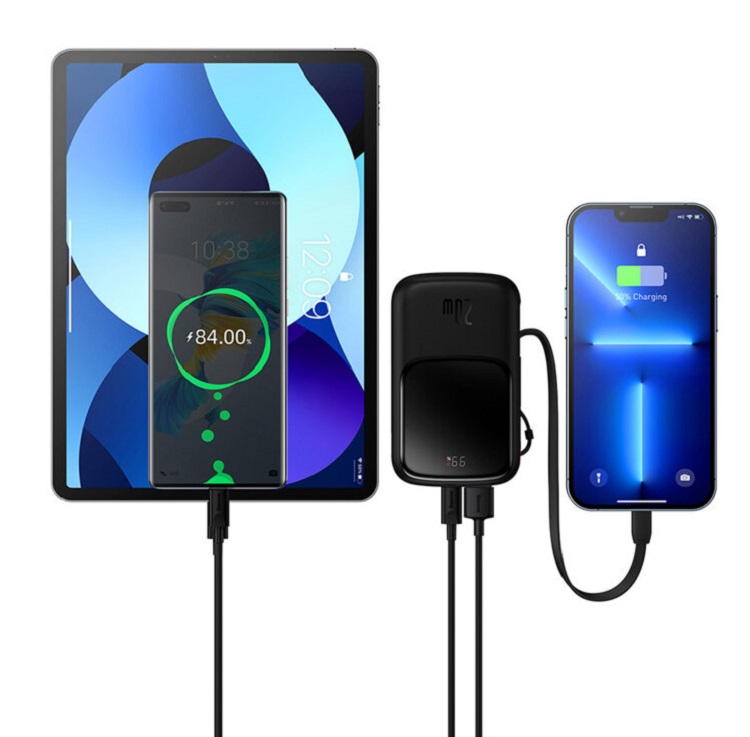 Acumulatorul extern Q Pow Digital Display 20000mAh de la Baseus, este un powerbank foarte elegant ce incarca rapid si eficient pana la 3 dispozitive simulatan. Acumulatorul extern respecta standardul Quick Charge, SCP, PD, FCP alimentand cu pana la 20W.