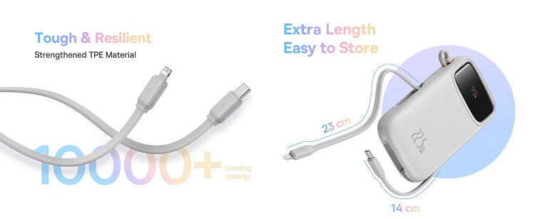 Cablul la indemana va permite sa luati cu usurinta bateria externa oriunde.