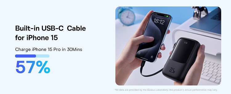 In ciuda dimensiunilor sale mici, powerbank-ul are o putere de pana la 22,5 W. Astfel, iti poti incarca dispozitivul mobil rapid si oriunde te-ai afla. Potrivit Baseus, folosind portul USB-A poti incarca, de exemplu, smartphone-ul Huawei Mate 60 Pro la 52% in 30 de minute.
