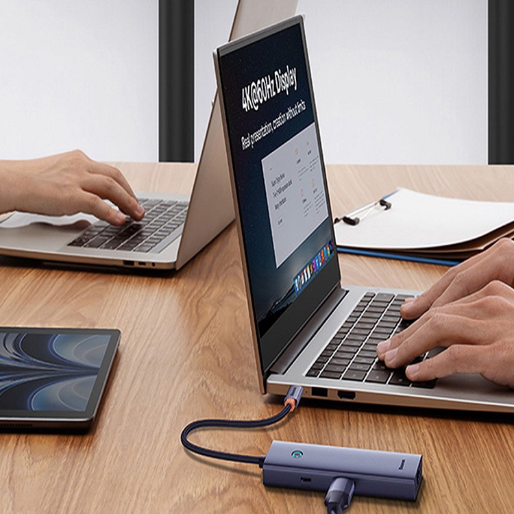 Multihub-ul marca Baseus este echipat cu un port HDMI care ofera o rezolutie 4K@60Hz, bucurati-va de o reproducere excelenta a culorilor si de o bogatie incredibila a detaliilor. Mai mult, dispozitivul dispune de un buton special care va va permite sa finalizati instantaneu partajarea ecranului.