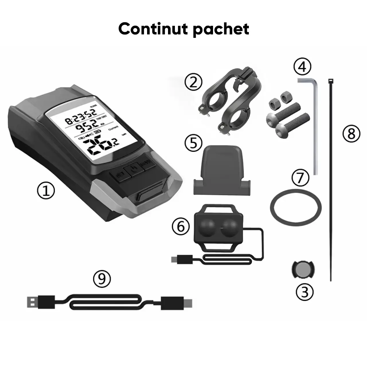 - Ciclocomputerul este wireless, eliminand necesitatea cablurilor si oferind o configurare simpla.