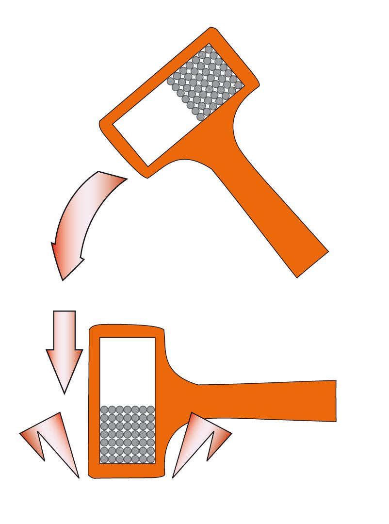 Umplerea interiorului cu boabe de plumb atenueaza reculul in timpul impactului.