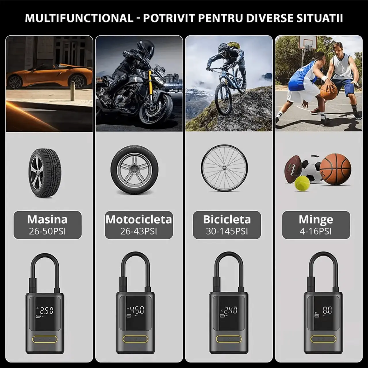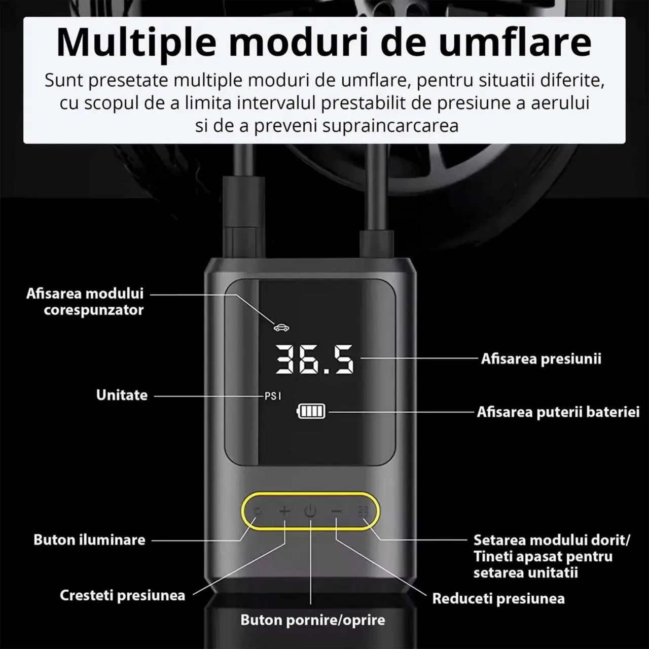 - Pomparea aerului nu a fost niciodata mai usoara, deoarece compresorul auto digital wireless este un produs multifunctional, practic si usor de utilizat oriunde si oricand.