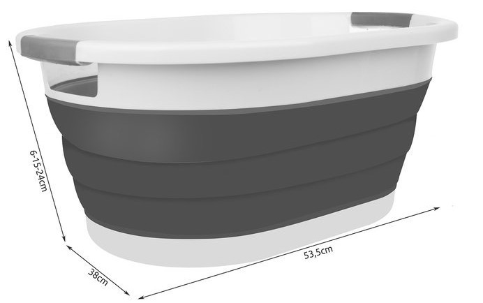 - APLICARE UNIVERSALA - cosul din silicon este universal in utilizare. Functioneaza foarte bine atat in gospodarie - de exemplu in baie, pentru rufele murdare, cat si in timpul excursilor ca o cada de baie pentru copii sau unul dintre cele mai utile articole de bucatarie, de ex. intr-un cort sau intr-o cabana de vara.