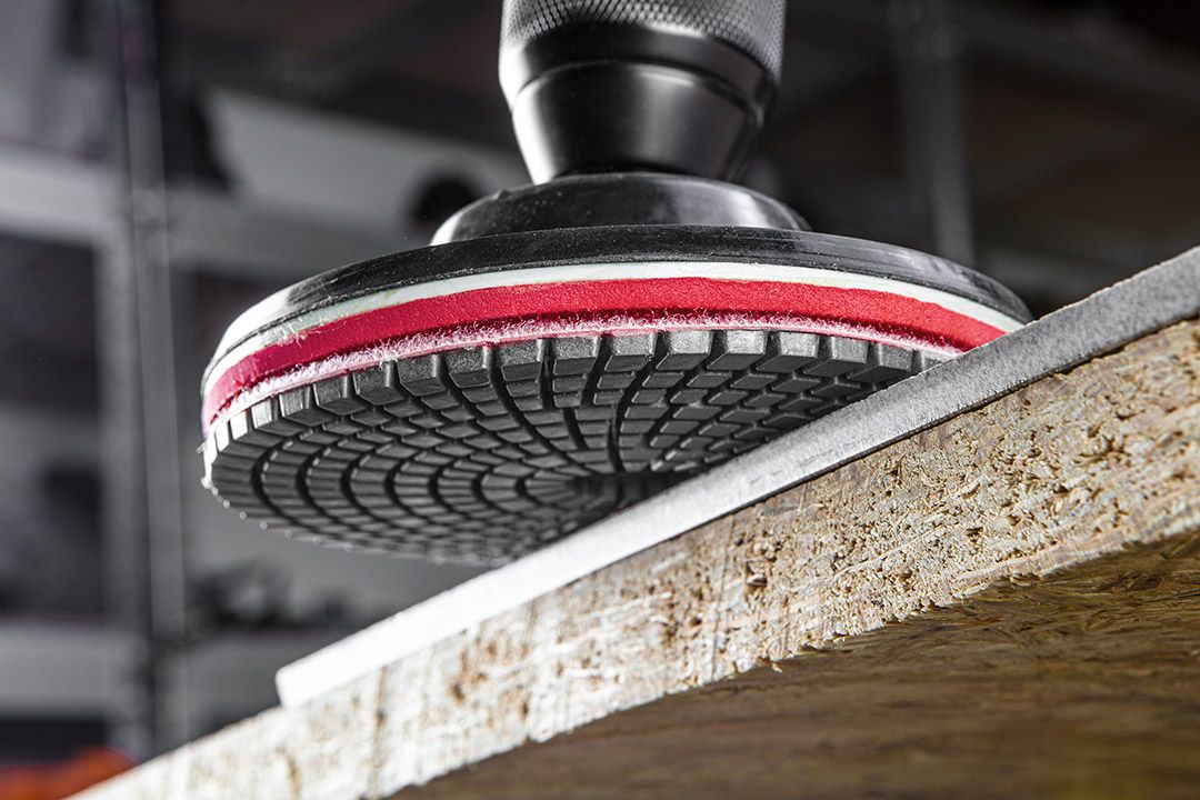Discheta se monteaza pe un suport cauciucat, iar aceasta poate fi utilizata cu ajutorul unui polizor unghiular (flex) sau a unei masini de gaurit (bormasina).
