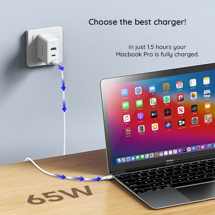 Ofera o putere de 65 W, facandu-l potrivit pentru incarcarea unei game largi de dispozitive, cum ar fi laptopuri, smartphone-uri, tablete si multe altele, suporta incarcare rapida PD+QC atat pentru Apple cat si pentru Android.