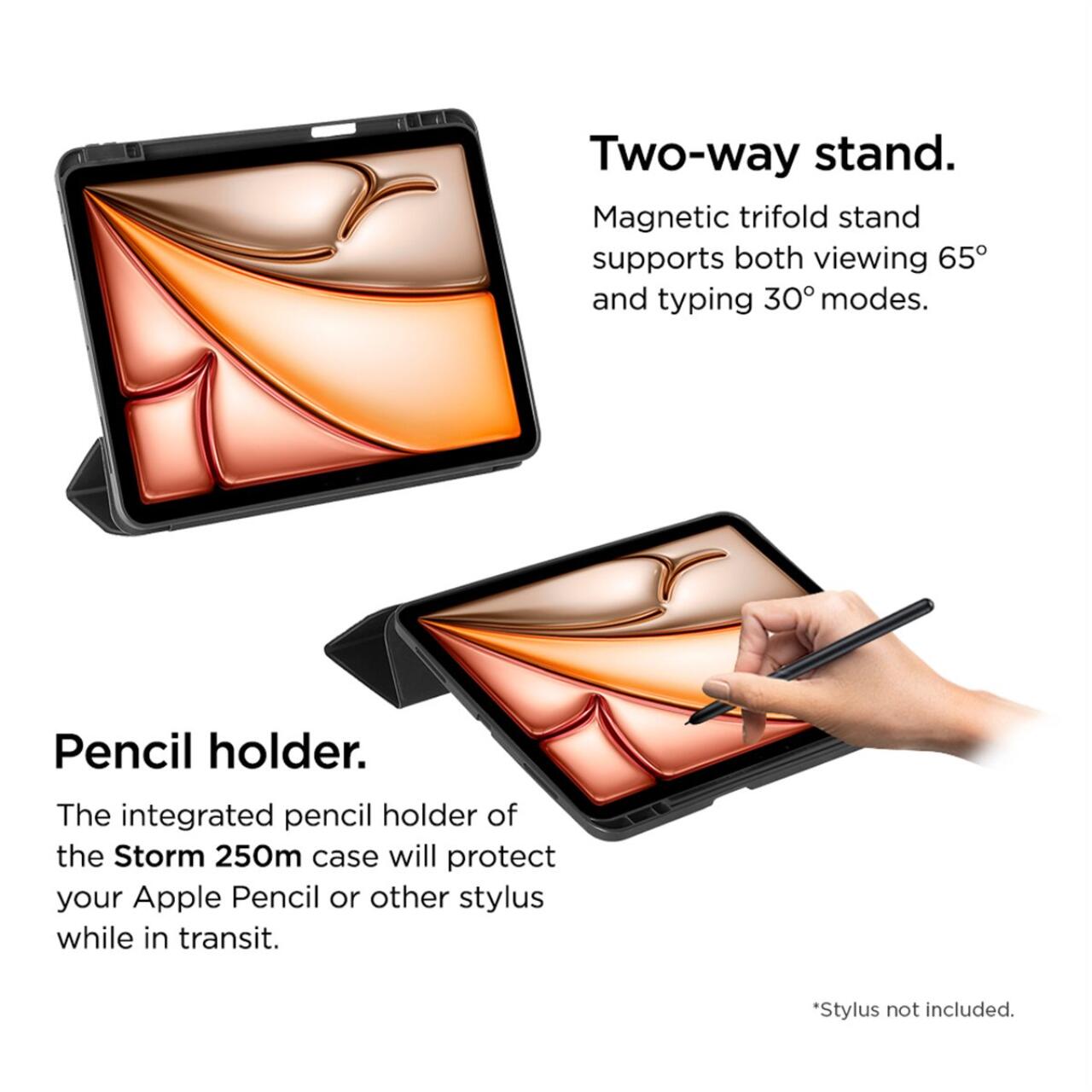Husa Storm 250m Stylus iPad Air 13 (2024) de la Eiger, ofera o protectie excelenta dispozitivului dumneavoastra cu mai multe unghiuri de vizualizare si este conceputa pentru a va completa stilul de viata activ.