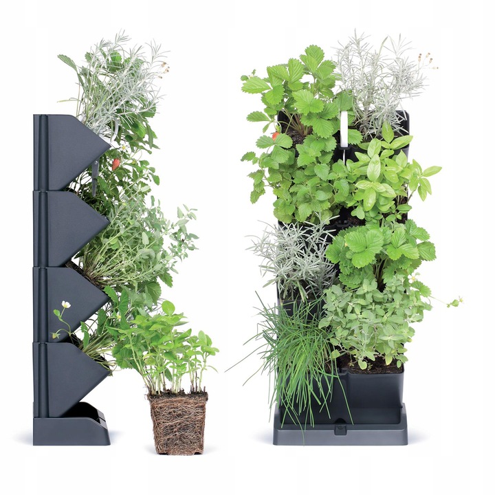 - Economie de spatiu: Datorita designului modular, ghivecele pot fi aranjate pe verticala