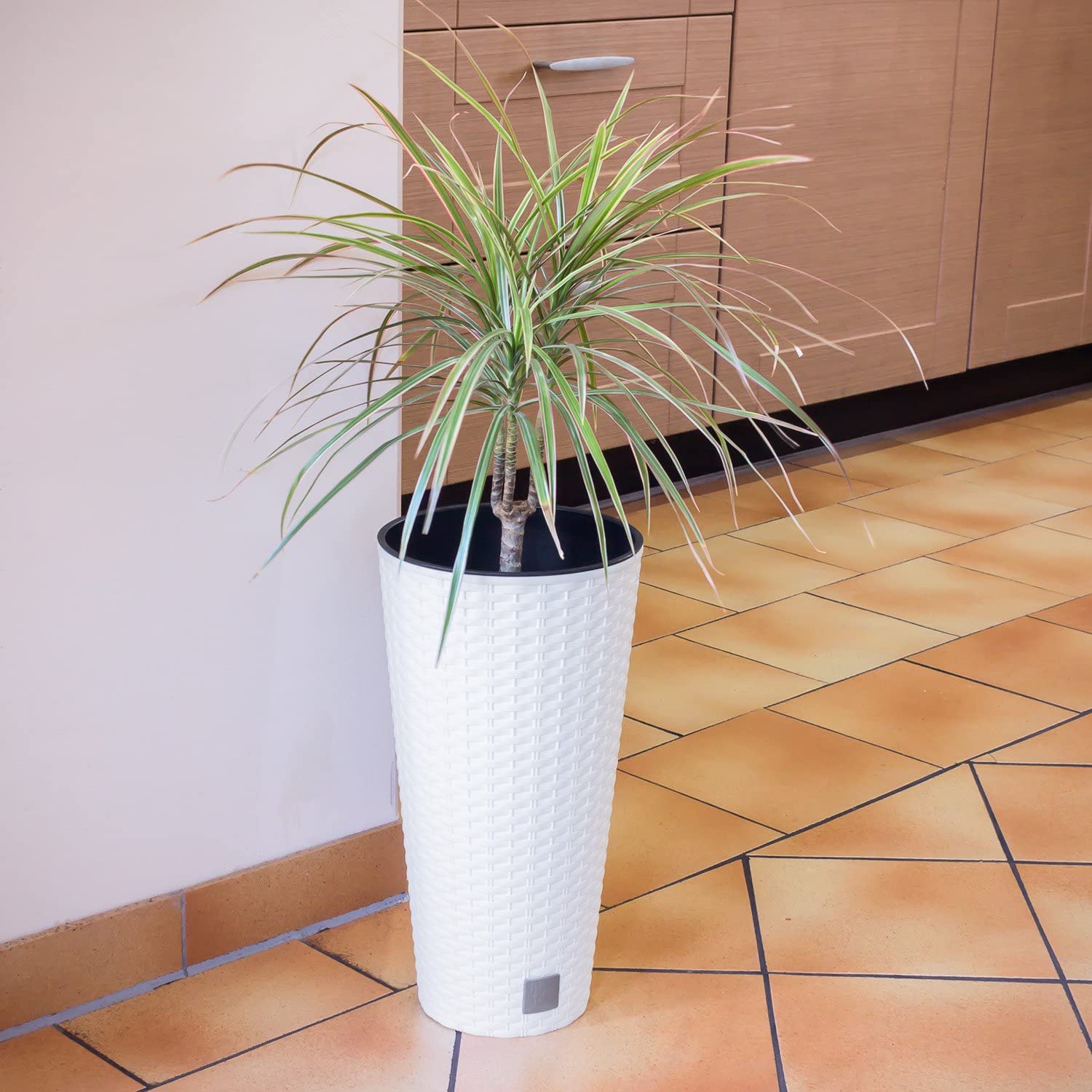 Ghiveci de flori, Prosperplast, Rato Tubus, rotund inalt, 15 L, imitatie ratan, alb, 25x47.6 cm