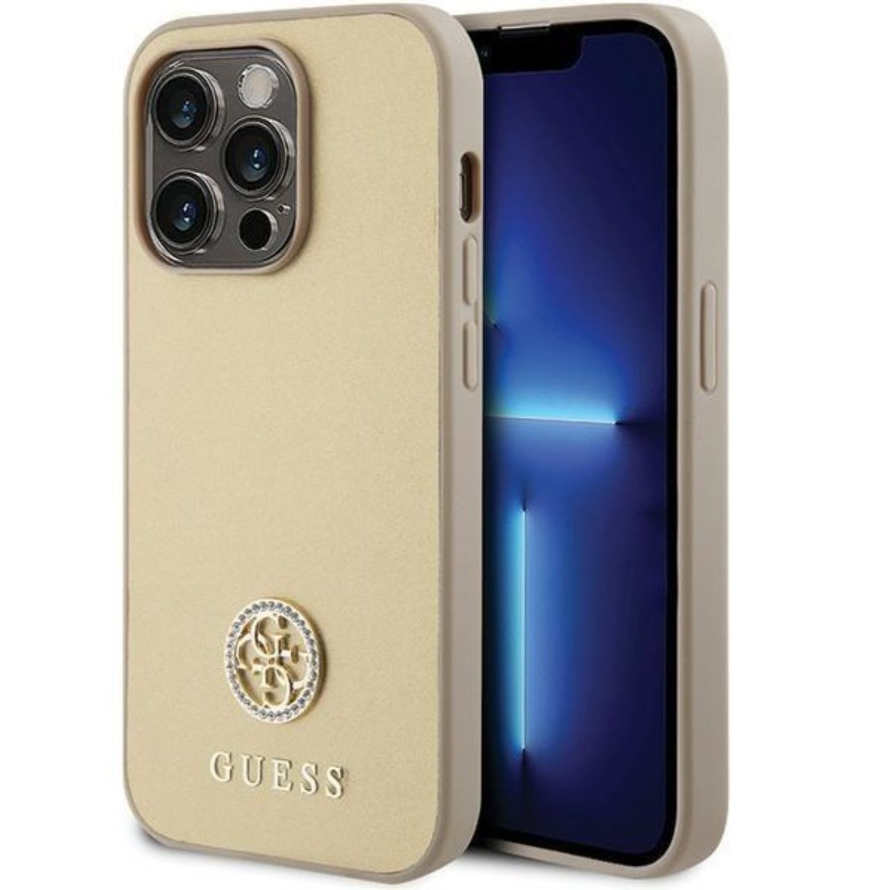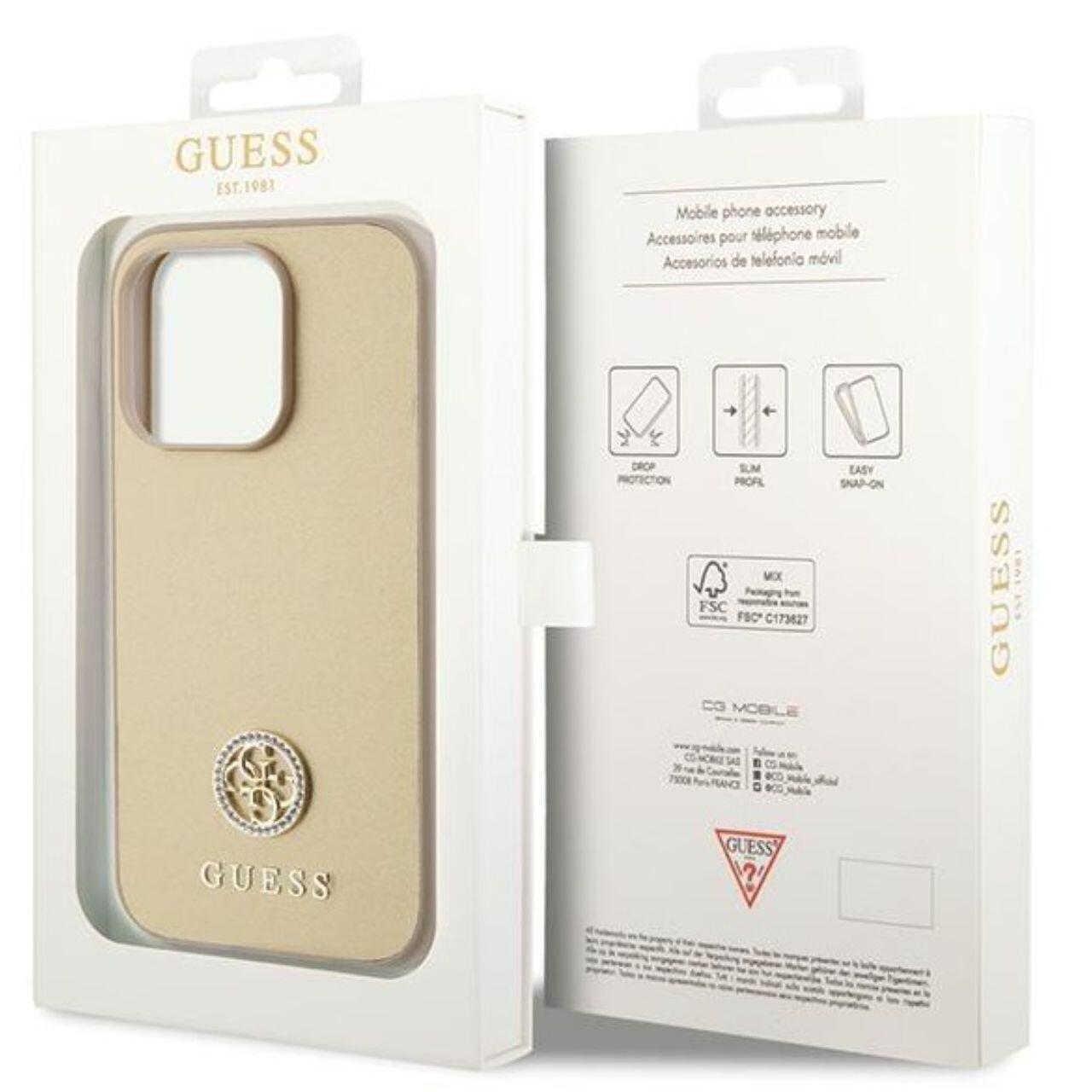 Guess Husa 4G Strass Metal Logo iPhone 15 Pro Auriu