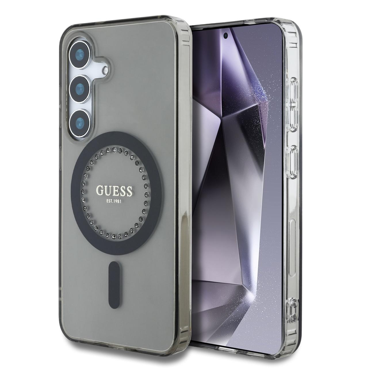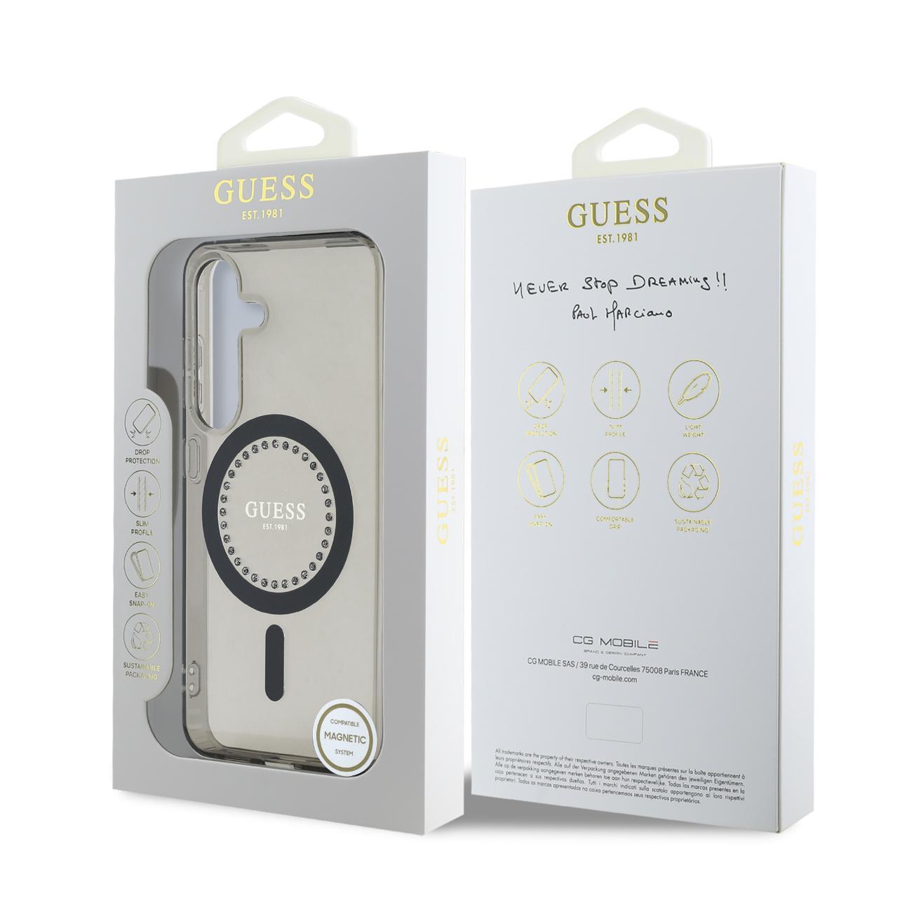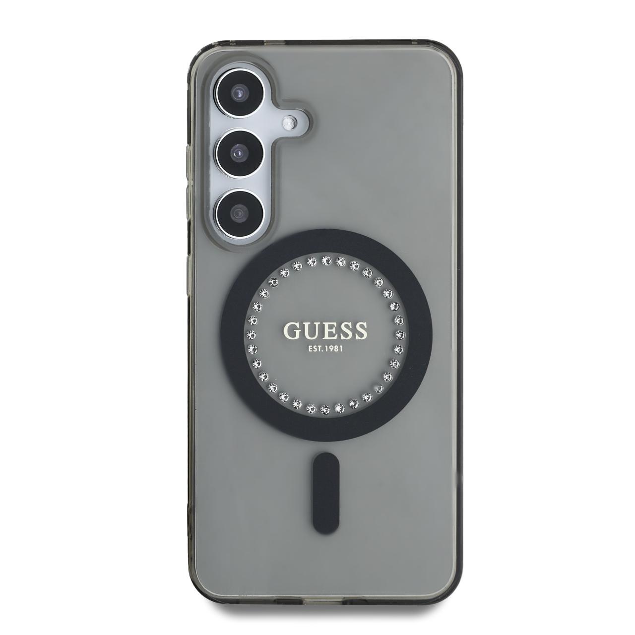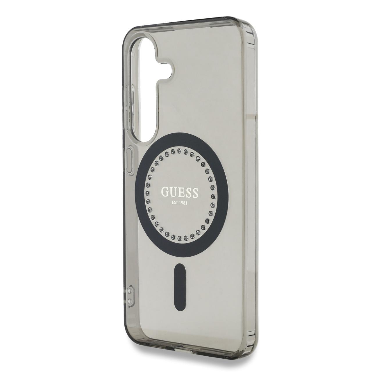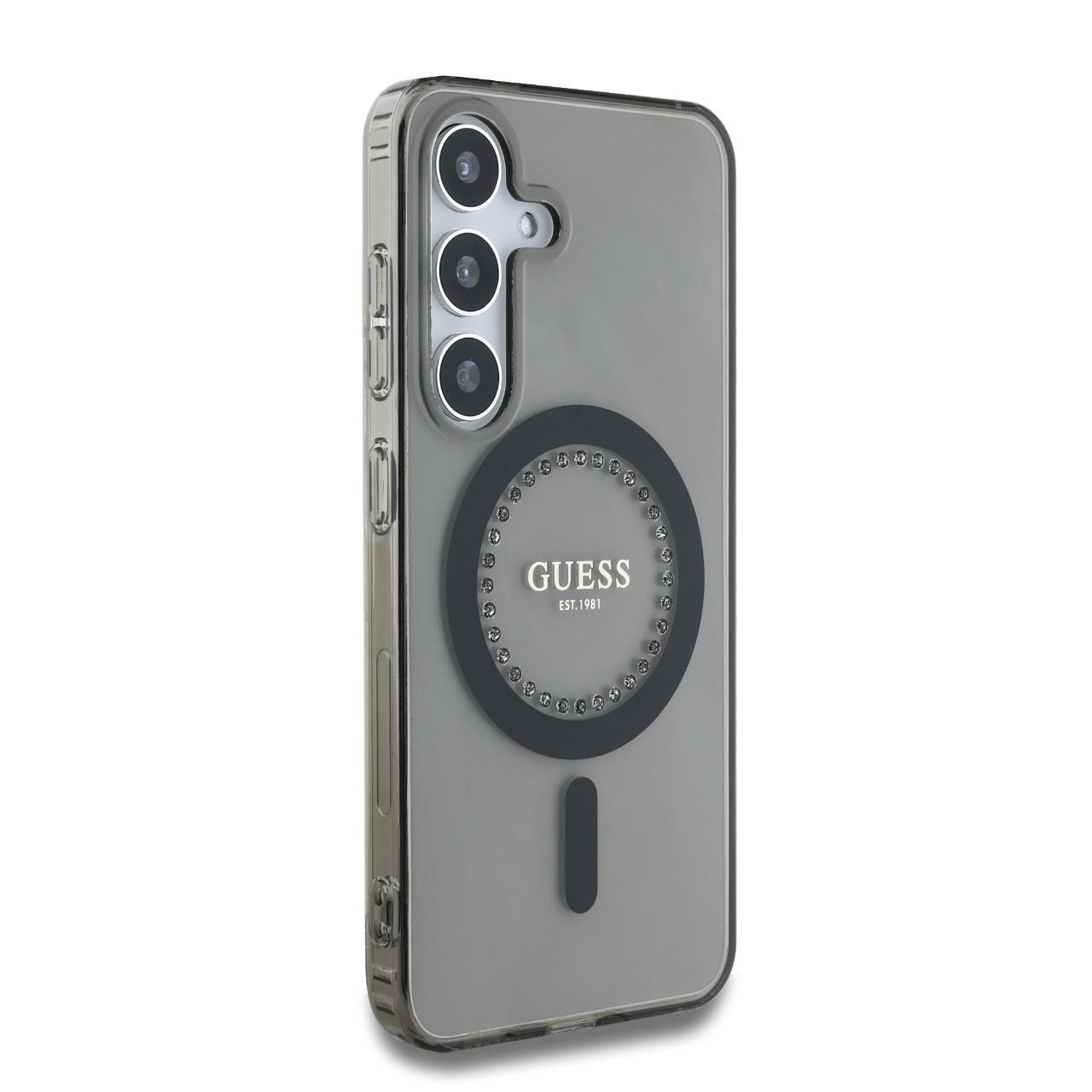 Guess Husa Rhinestones Ring MagSafe Samsung Galaxy S25 Negru