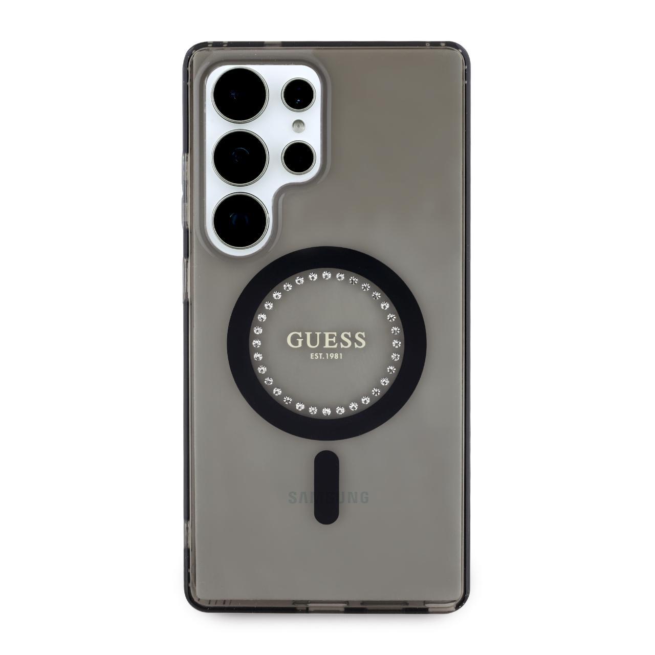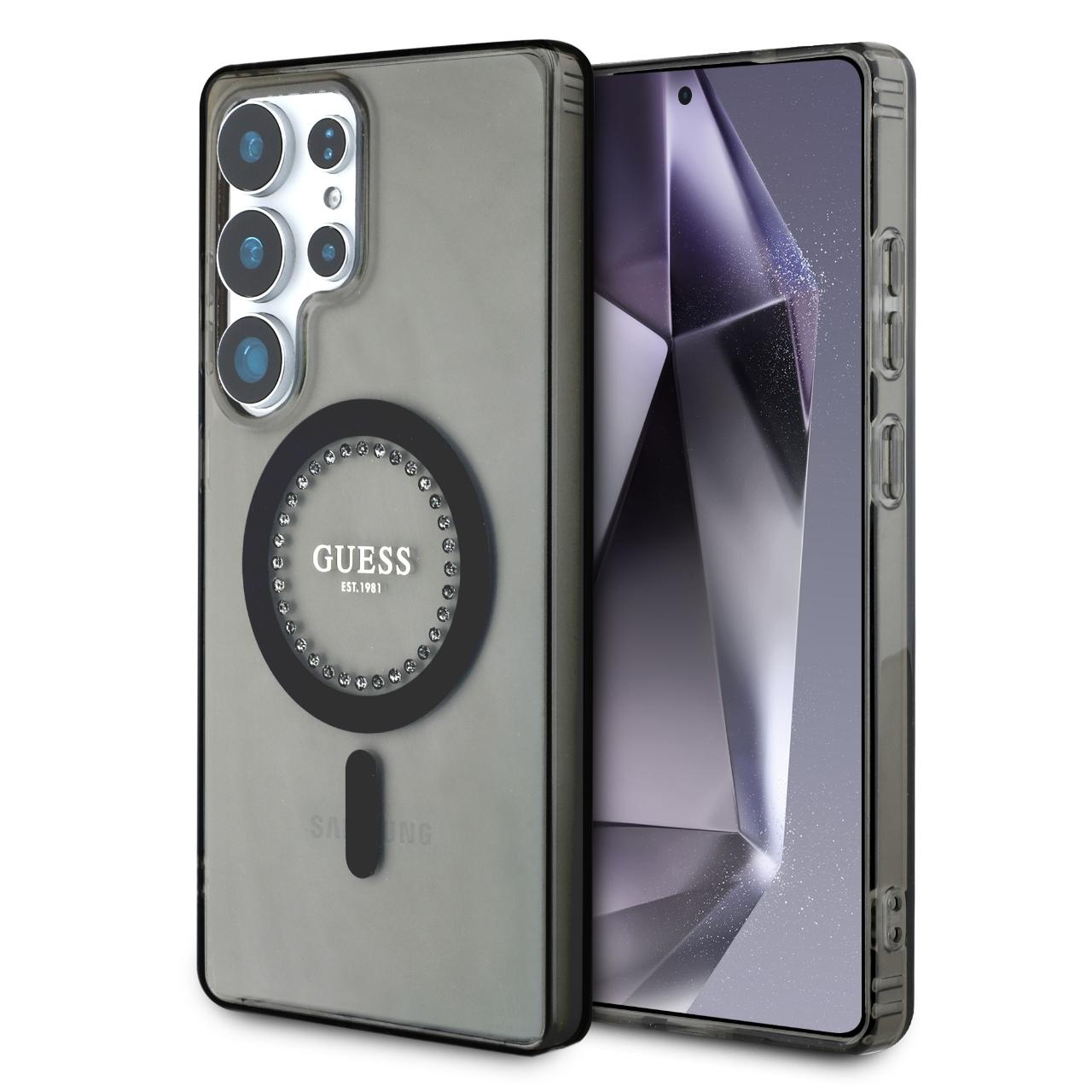 Guess Husa Rhinestones Ring MagSafe Samsung Galaxy S25 Ultra Negru