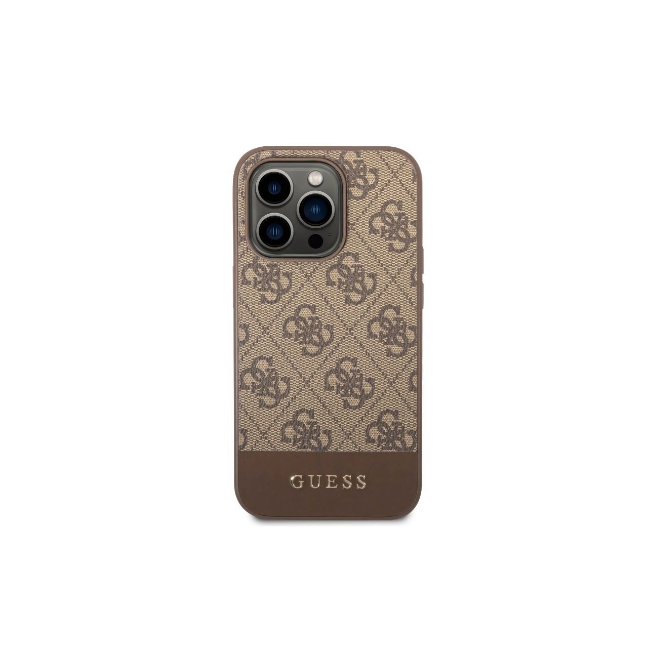 Husa iPhone 14 Pro Max Guess 4G Stripe Metal Logo Brown
