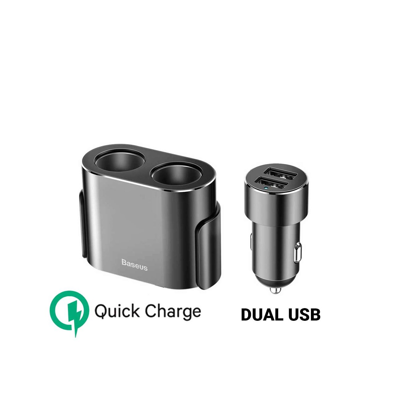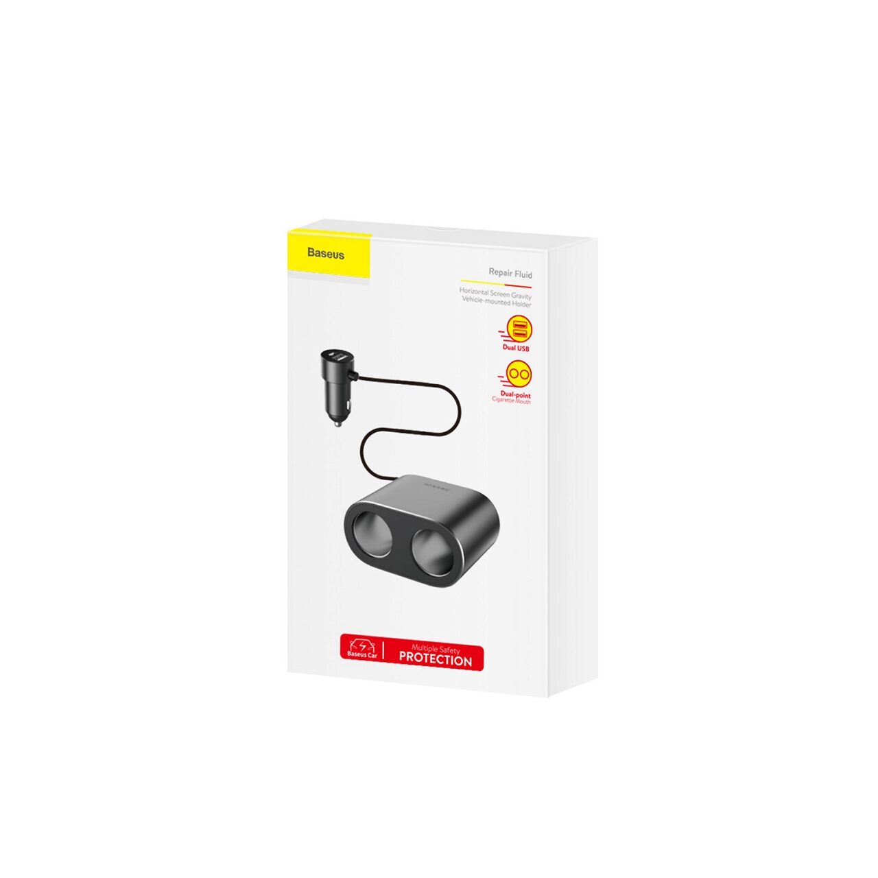 Incarcatorul auto Dual USB cu Splitter Dual de la Baseus permite incarcarea rapida cu un amperaj maxim de 3.1A pe un singur port sau 3.1A total. Atasat de incarcator cu un cablu de 60 cm se afla un Splitter Dual ce se poate utiliza pentru a incarca mini frigidere de masina, aspiratoare auto, camere auto sau alte gadget-uri ce se pot incarca in priza masinii cu o putere de maxim 80W (* Nu suporta bricheta masinii).