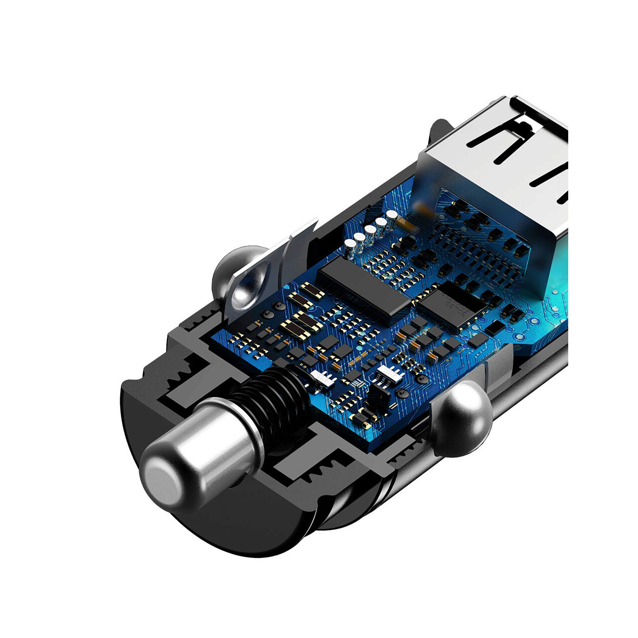 Incarcatorul Auto Metalic Quick Charger Dual Port 30W de la Baseus poate fi utilizat pentru incarcarea rapida a doua dispozitive mobile simultan datorita celor doua porturi USB, cu un amperaj de maxim 5A per port (in cazul utilizarii porturilor simultan amperajul de 5A se imparte). Suporta incarcarea rapida QC 3.0, QC 2.0, Huawei SCP, Samsung AFC, MTK PE+ si altele cu o putere de 30W (Max) asemanator incarcatorelor originale.