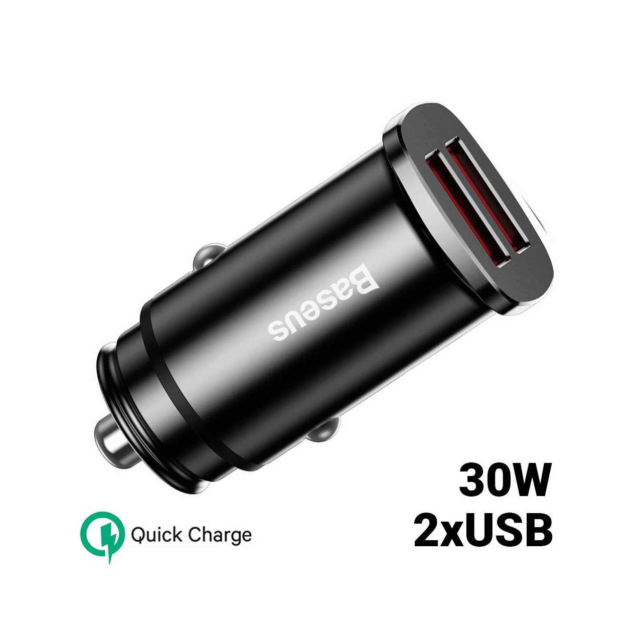 Baseus Incarcator Auto Metalic Quick Charger Dual Port 30W Black (5A max, QC3.0)