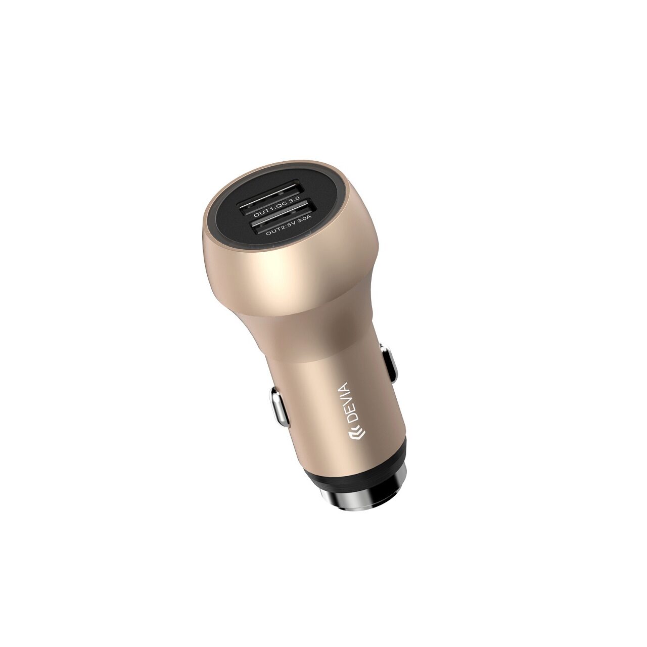 Devia este un incarcator auto cu doua sloturi USB de 3.0 A, pentru incarcarea smartphone-urilor sau a tabletelor. Unul dintre sloturi foloseste tehnologia quick charge (QC3.0) ce permite o incarcare cu pana la 60 % mai rapida fata de incarcatoarele obisnuite. Materialele folosite sunt de cea mai buna calitate, iar designul este foarte elegant si minimalist.