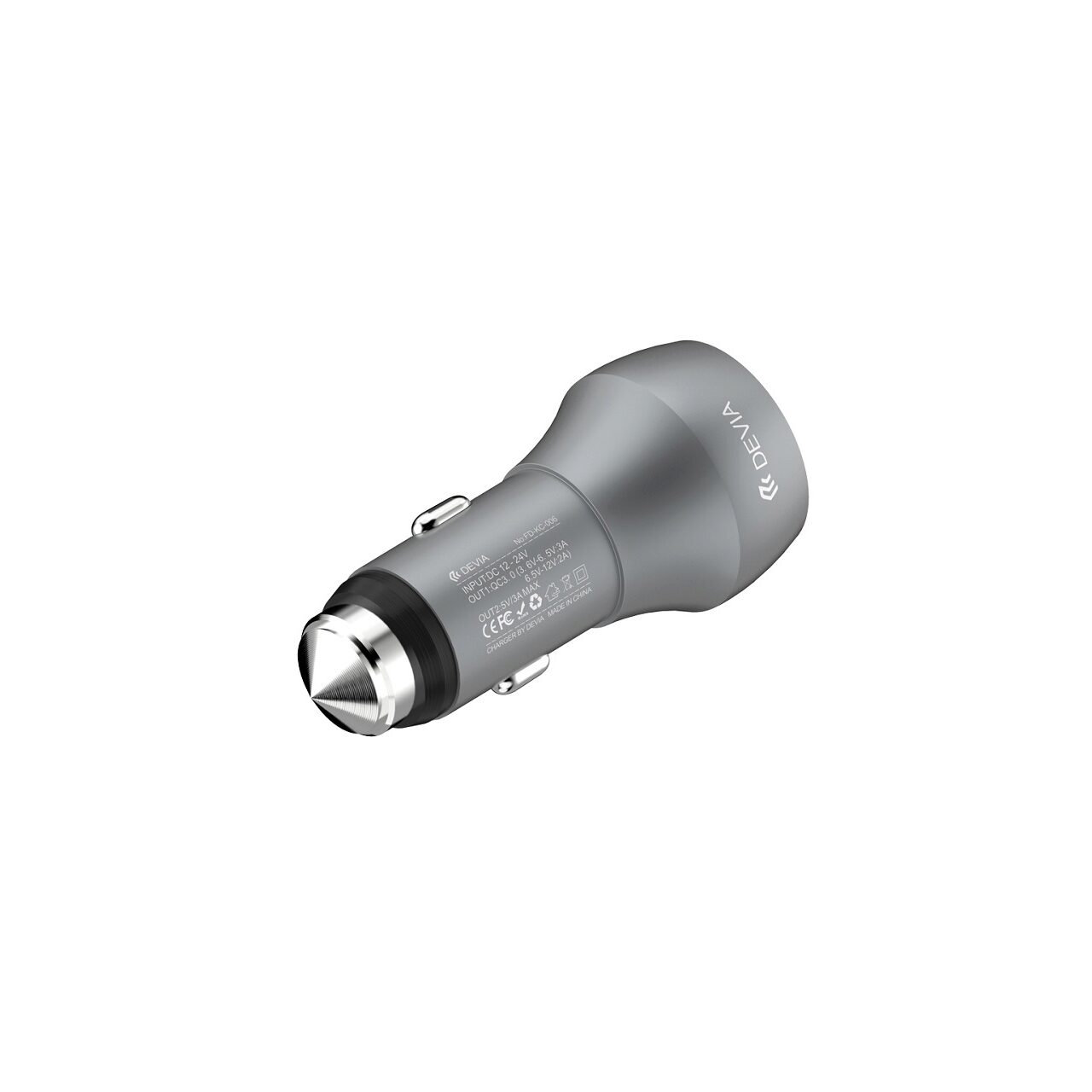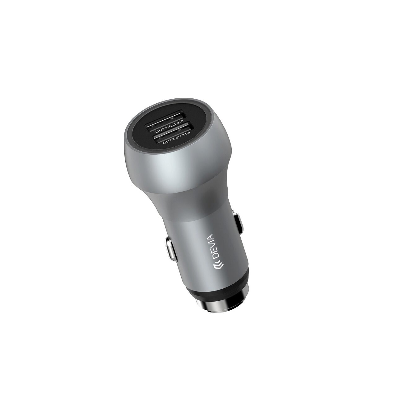 Devia este un incarcator auto cu doua sloturi USB de 3.0 A, pentru incarcarea smartphone-urilor sau a tabletelor. Unul dintre sloturi foloseste tehnologia quick charge (QC3.0) ce permite o incarcare cu pana la 60 % mai rapida fata de incarcatoarele obisnuite. Materialele folosite sunt de cea mai buna calitate, iar designul este foarte elegant si minimalist.