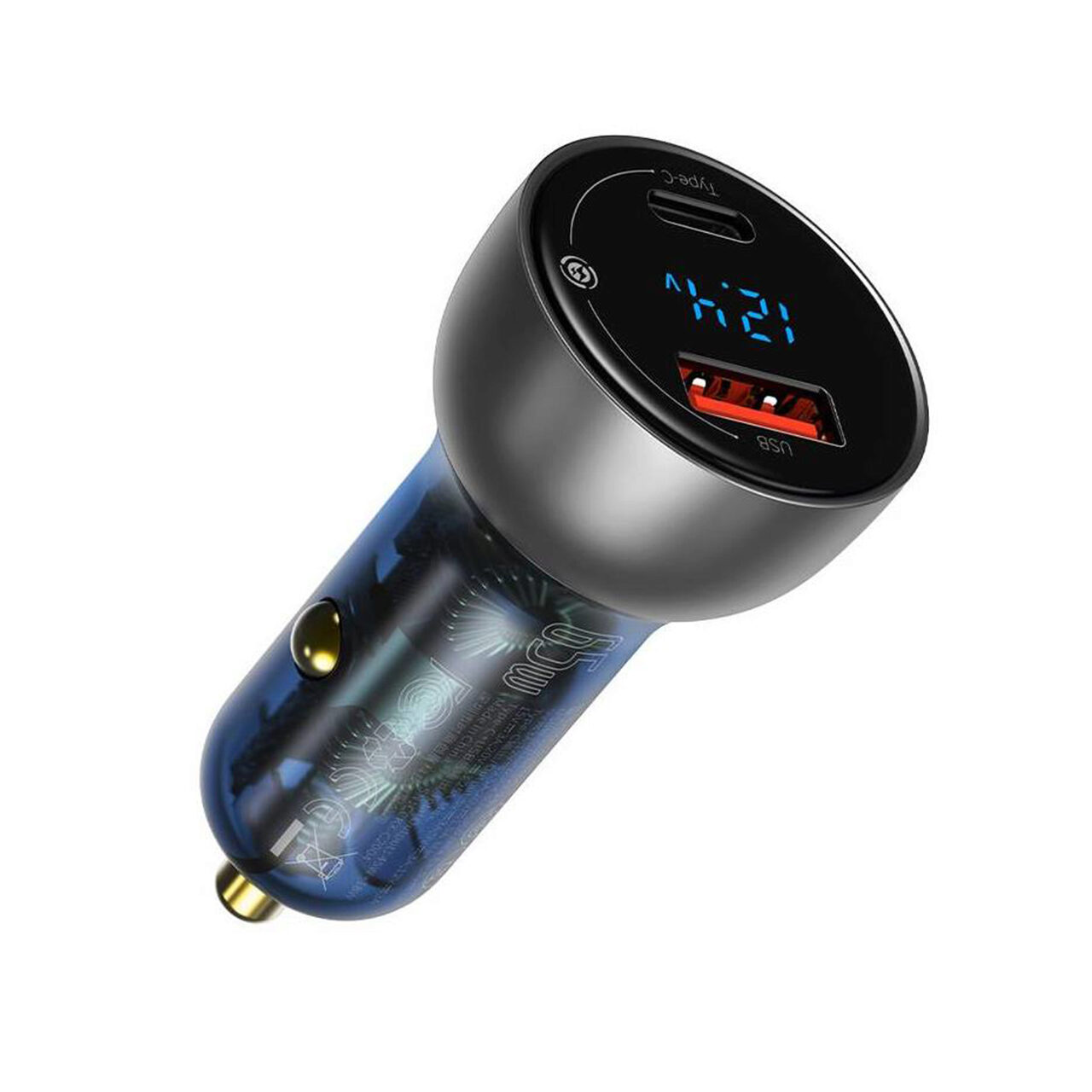 Incarcatorul Auto Particular Digital Display Dual USB si Type-C de la Baseus poate fi utilizat pentru incarcarea a doua dispozitive mobile simultan datorita celor doua porturi USB si Type-C. Intre cele doua porturi se regaseste un display digital ce afiseaza amperajul cu care acesta incarca.