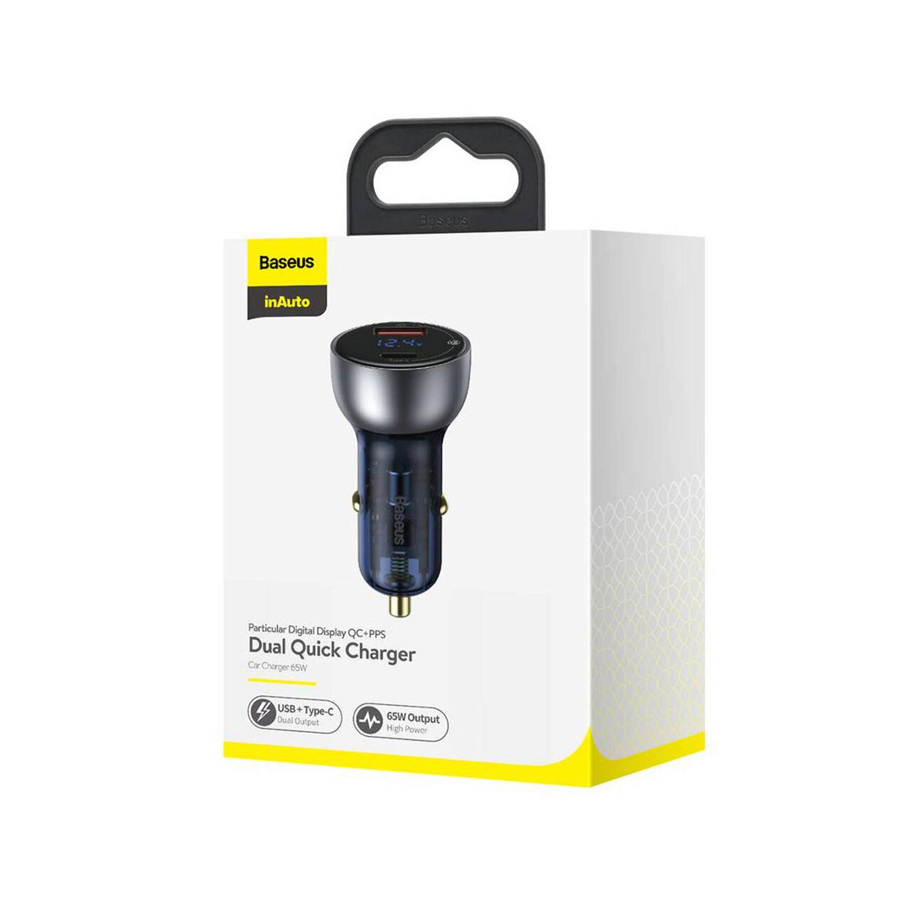 Baseus Incarcator Auto Particular Digital Display Dual USB si Type-C Quick Charger Silver (65W)
