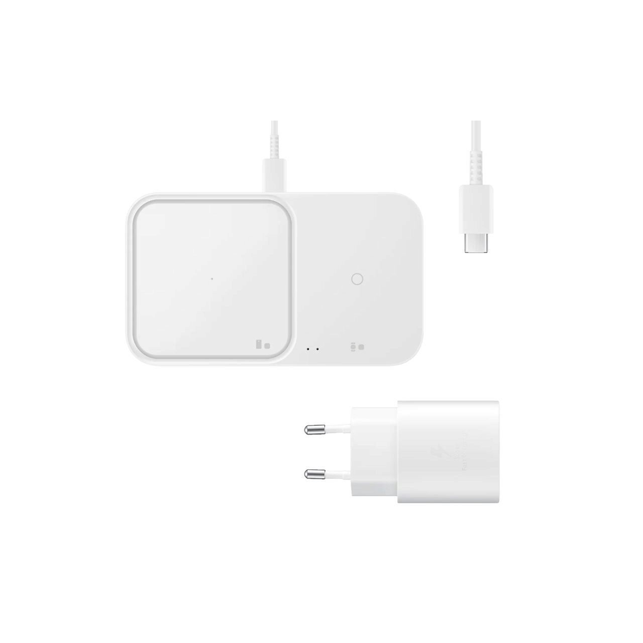 Incarcator Original Duo Pad Samsung Wireless 15W cu incarcare rapida Alb (incarcator priza inclus)