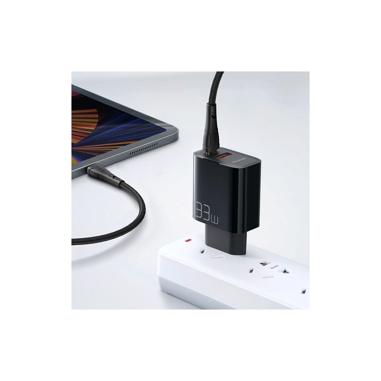 Incarcatorul Priza Dual Port Fast Charge + Cablu Type-c la Type-c de 33W de la Mcdodo va permite sa incarcati 2 dispozitive in acelasi timp cu o putere mare de 33 W, potrivit pentru telefon mobil/tableta/laptop/consola de jocuri de asemenea, accepta modul de curent scazut, poate incarca casti si ceasuri inteligente.