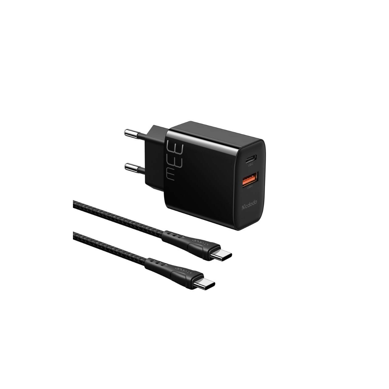 Set Incarcator Retea Mcdodo Dual Port Fast Charge 33W + Cablu Type-c la Type-c 1,2m, Black