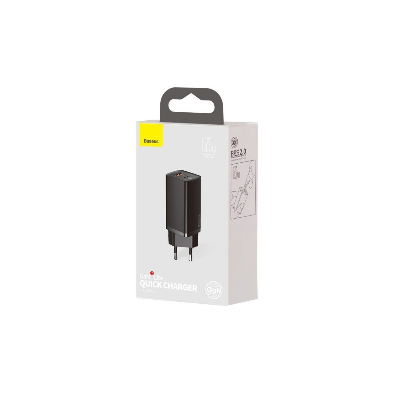 Baseus Incarcator Retea GaN2 Lite Dual USB Quick Charger Black (Type-C, USB, 65W)