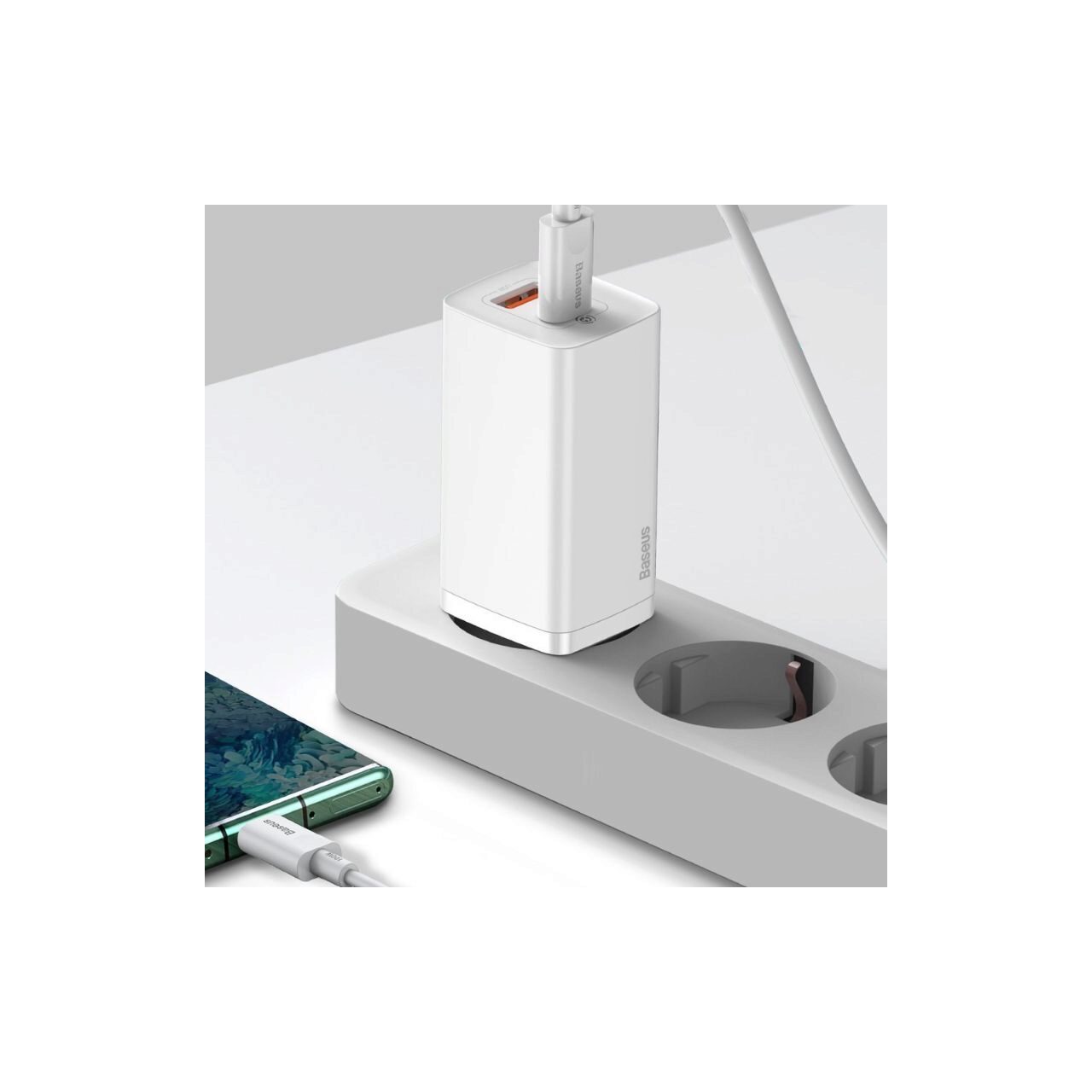 Este perfect pentru incarcarea laptopurilor cu un conector USB de tip C, de asemenea, este posibil sa incarcati doua dispozitive in acelasi timp. Tehnologia BPS (Baseus power split) permite impartirea inteligenta a curentului de iesire atunci cand operati mai multe dispozitive. Pentru a imbunatati confortul utilizarii incarcatorului Baseus GaN, producatorul a folosit pana la 6 protectii, inclusiv supraincalzire, supratensiune, tensiune inalta, suprasarcina, consum excesiv de energie si electrostatica.