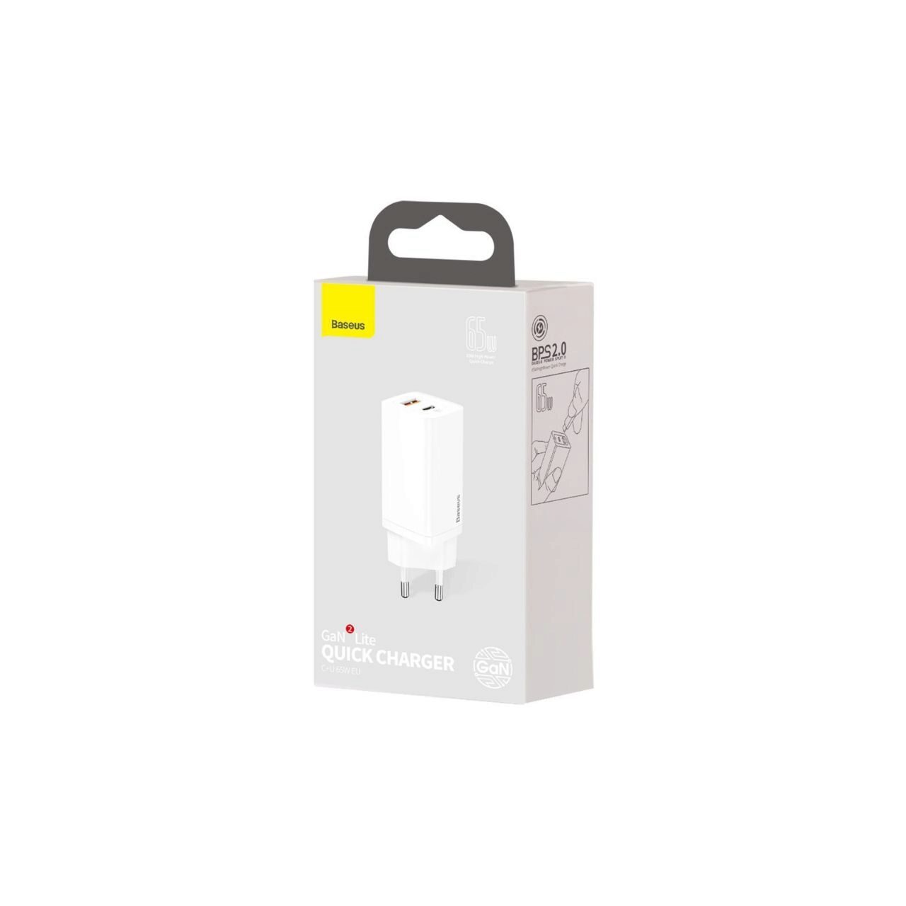 Baseus Incarcator Retea GaN2 Lite Dual USB Quick Charger White (Type-C, USB, 65W)