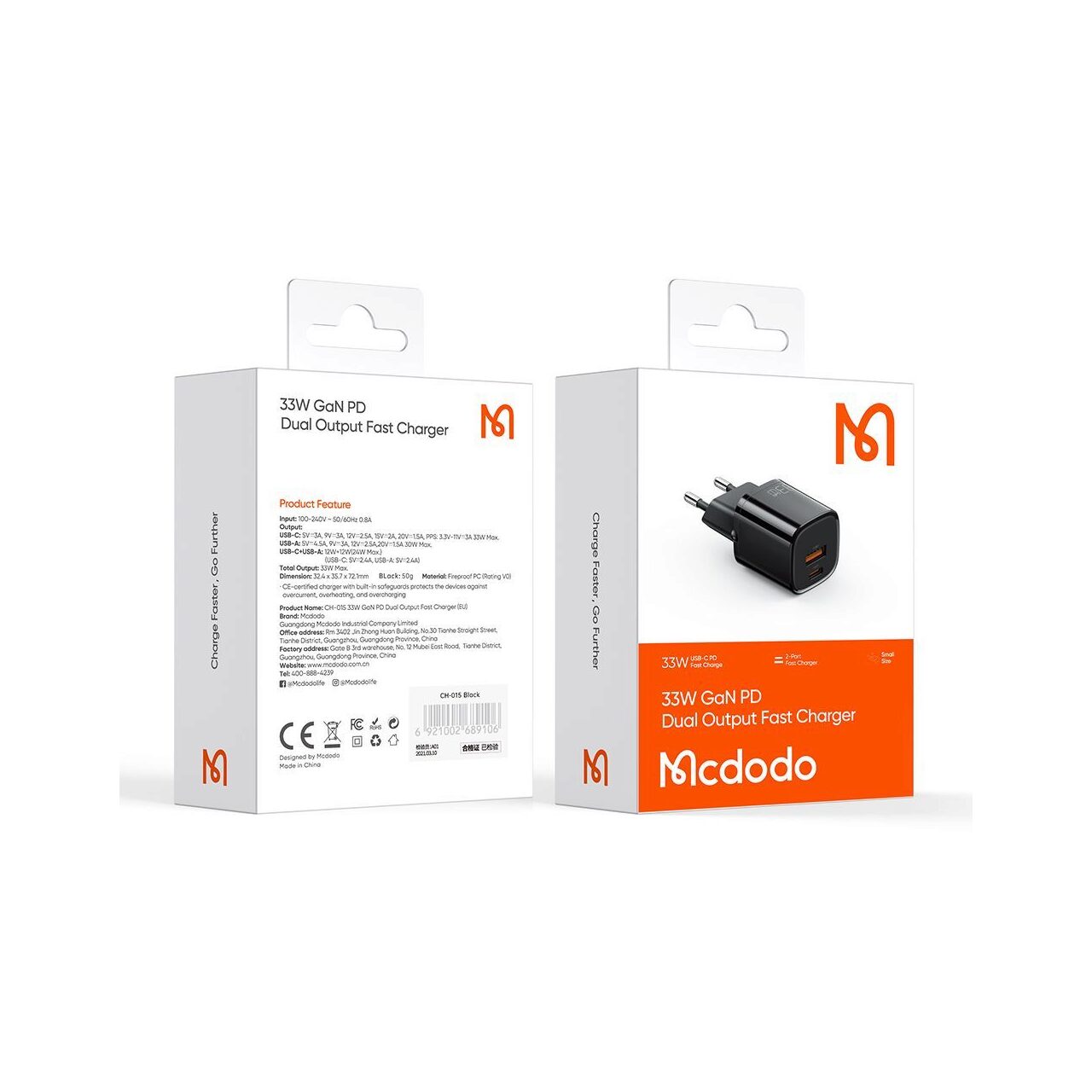 Incarcator Retea Mcdodo Nano Series Dual USB PD+QC 33W Black