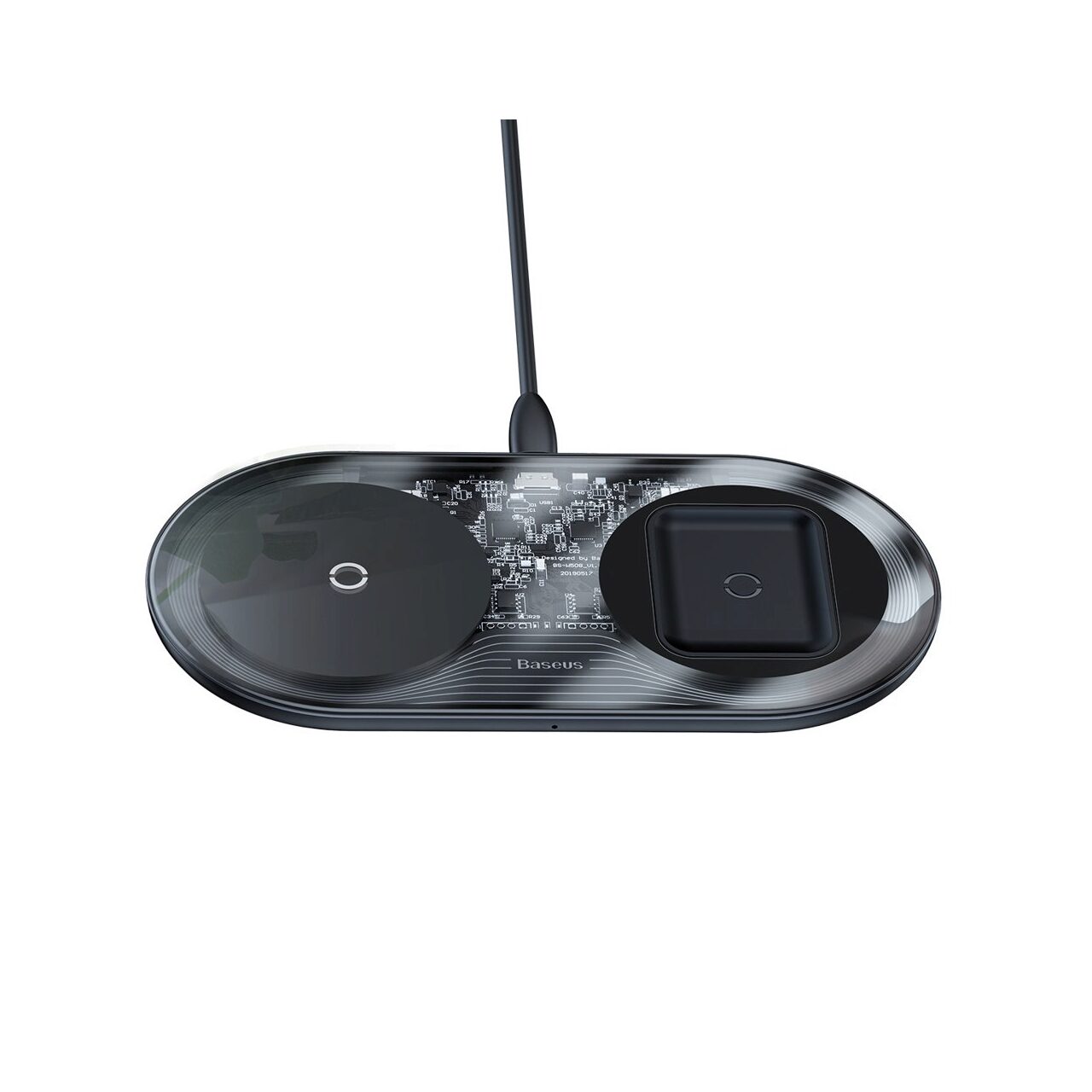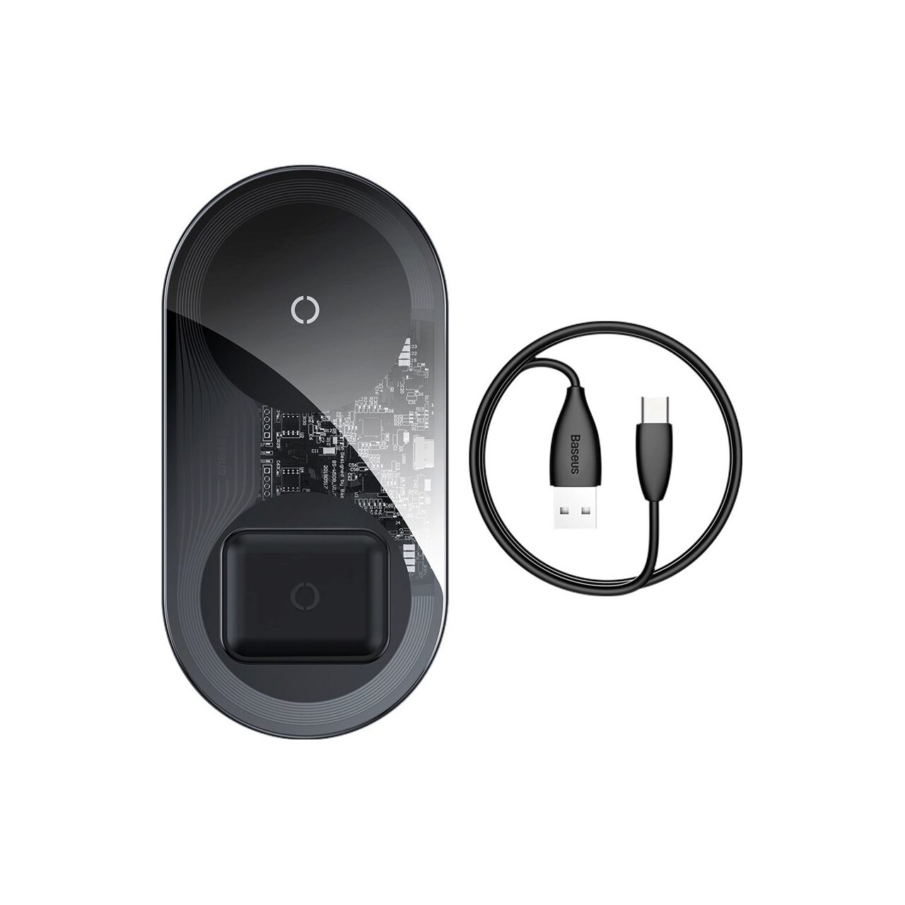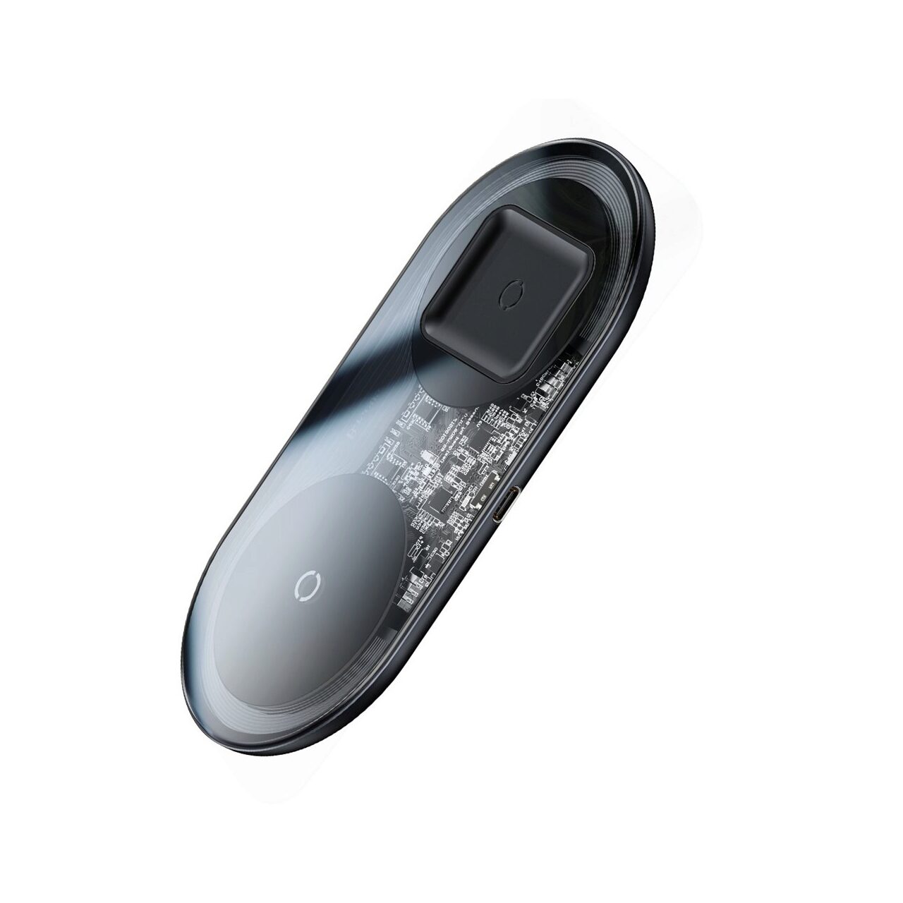 Baseus Incarcator Simple 2 in 1 Wireless Transparent Black (pentru telefoane si AirPods)