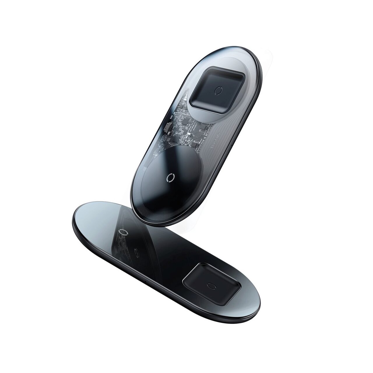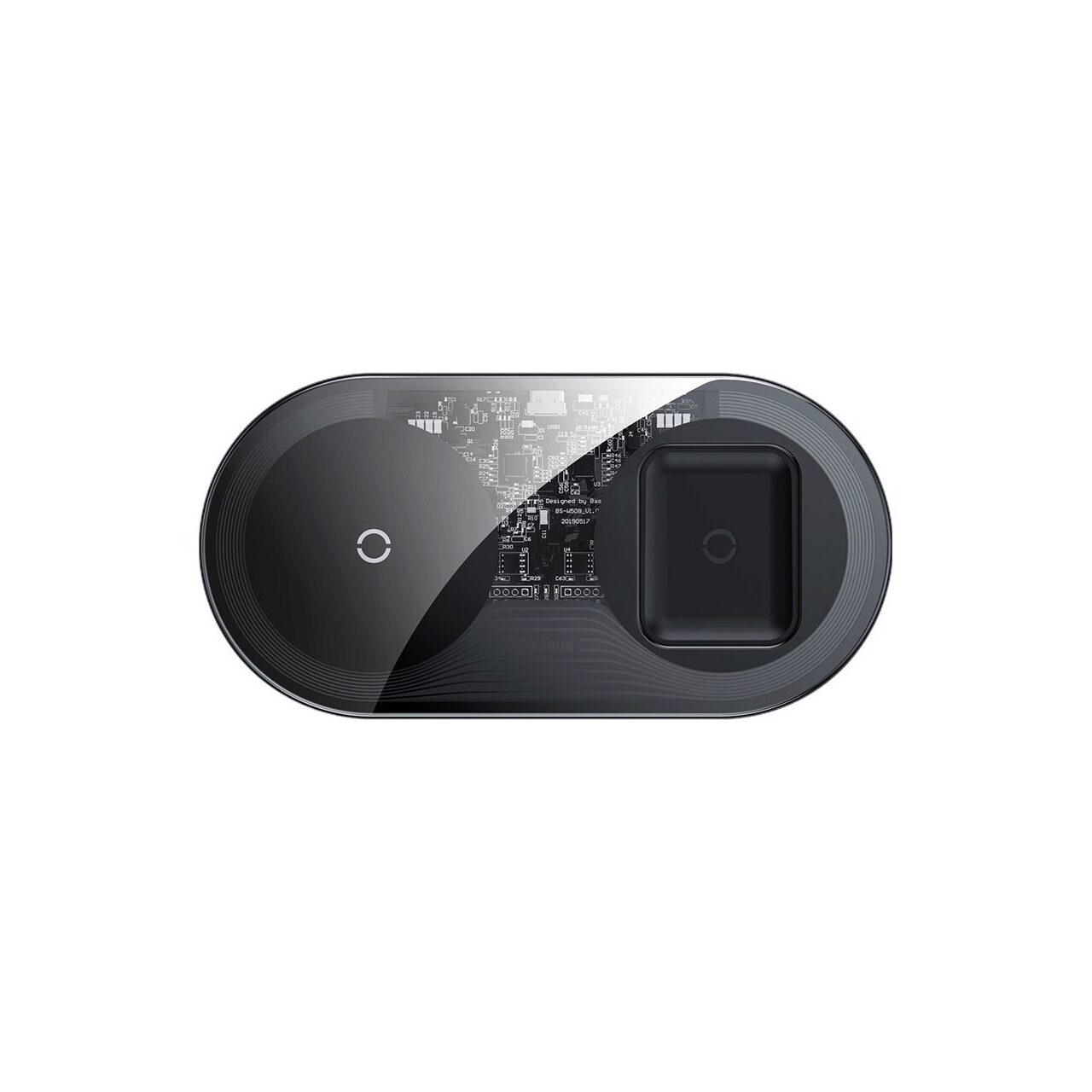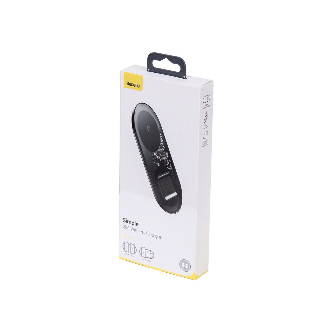 Baseus Incarcator Simple 2 in 1 Wireless Transparent Black (pentru telefoane si AirPods)