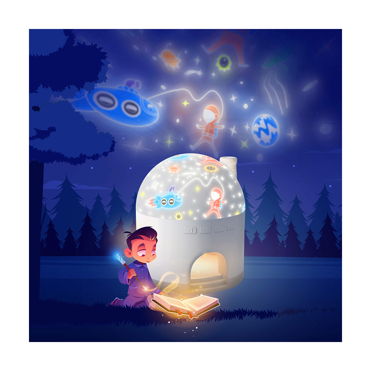 Lampa de veghe a fost special creata pentru a realiza o atmosfera linistitoare, de poveste pentru copilul tau, propice pentru un somn bun.