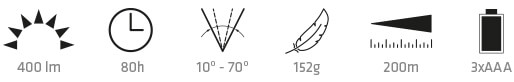 Q4 folosește baterii alcaline 3xAAA, dar are aceleași performanțe ca majoritatea lanternelor care utilizează baterii alcaline 4xAAA. În viața de zi cu zi, acest lucru înseamnă că dvs. și mediul înconjurător economisiți o baterie de fiecare dată când ar trebui să schimbați bateriile, fără a compromite performanța.