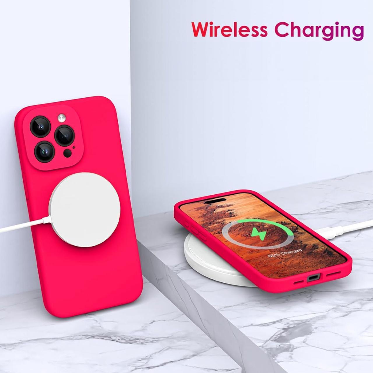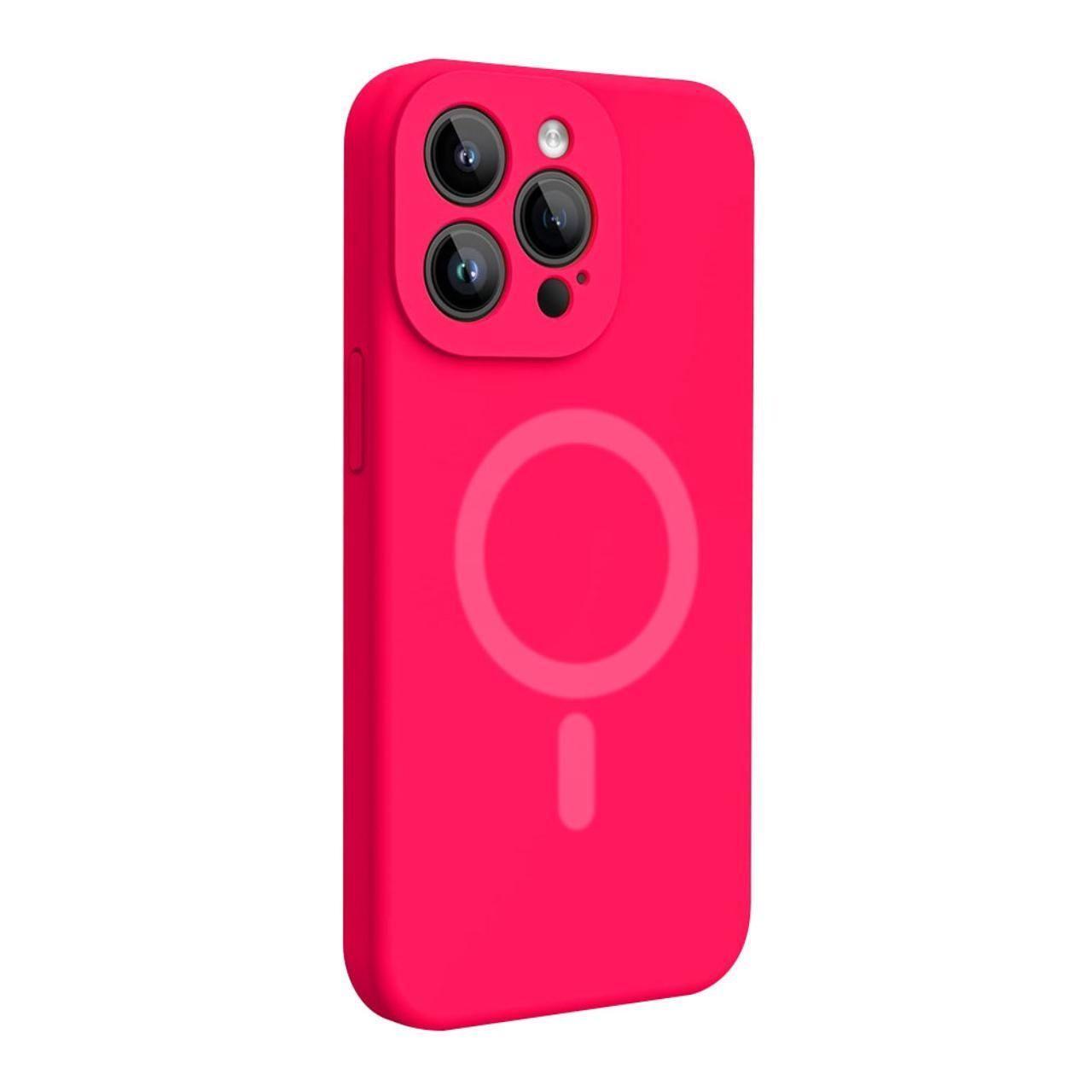 Lemontti Husa Liquid Silicon MagCharge iPhone 15 Pro Max Roz Neon (protectie 360°, material fin, captusit cu microfibra)