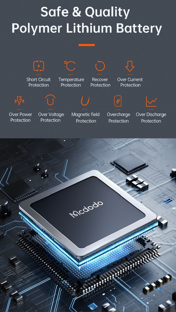 Cipul inteligent MSC (Mcdodo Smart Charging) detecteaza cererea de energie a dispozitivului si ajusteaza cu precizie tensiunea si curentul.Doua miezuri independente de cip masoara toti parametrii de functionare de pana la 1.500 de ori pe secunda! Datorita acestui lucru,nu va puteti ingrijora de orice supraincarcare, descarcare, supratensiune si supraincalzire.