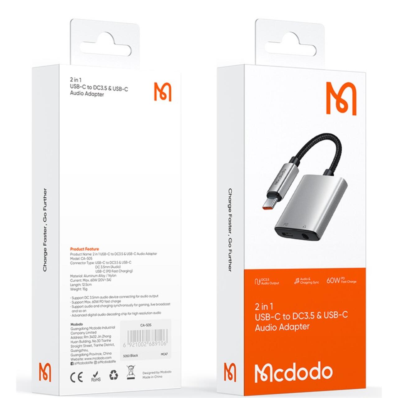 Mcdodo Adaptor Audio 2 in 1 USB-C la USB-C +DC3.5mm, Fast Charge, 60W PD, Negru