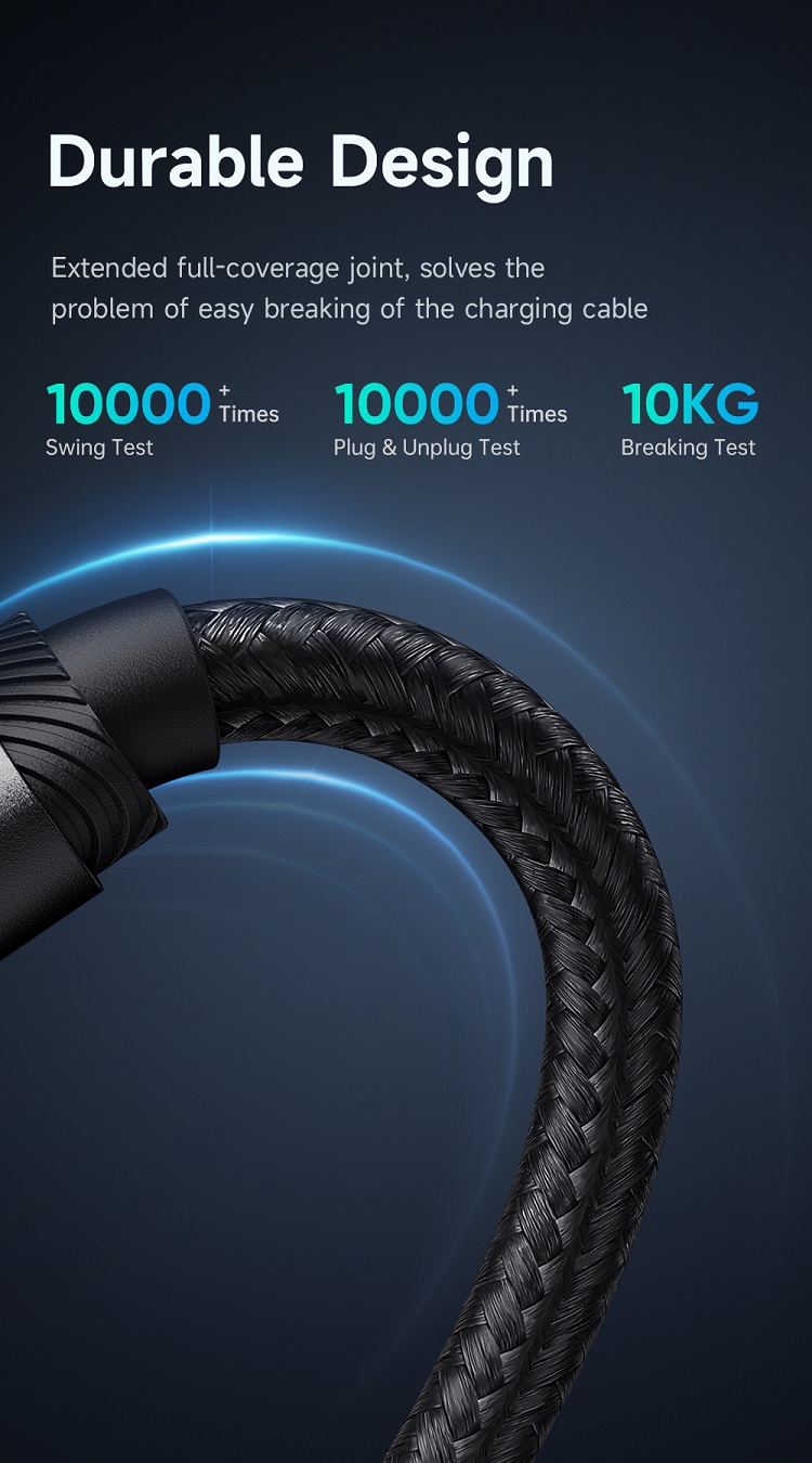 Carcasa din aliaj de aluminiu, de lunga durata, rezistenta la zgarieturi, textura excelenta si snur impletit din nailon, fara innoduri, fara infasurare: firele sunt stranse si flexibile, usor de depozitat si mai durabile.