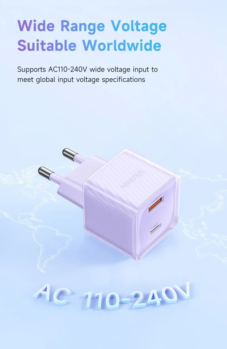 Mcdodo Incarcator Retea Dual Port Type-C si USB-A Dichromatic, Fast Charging PD 33W, Mov