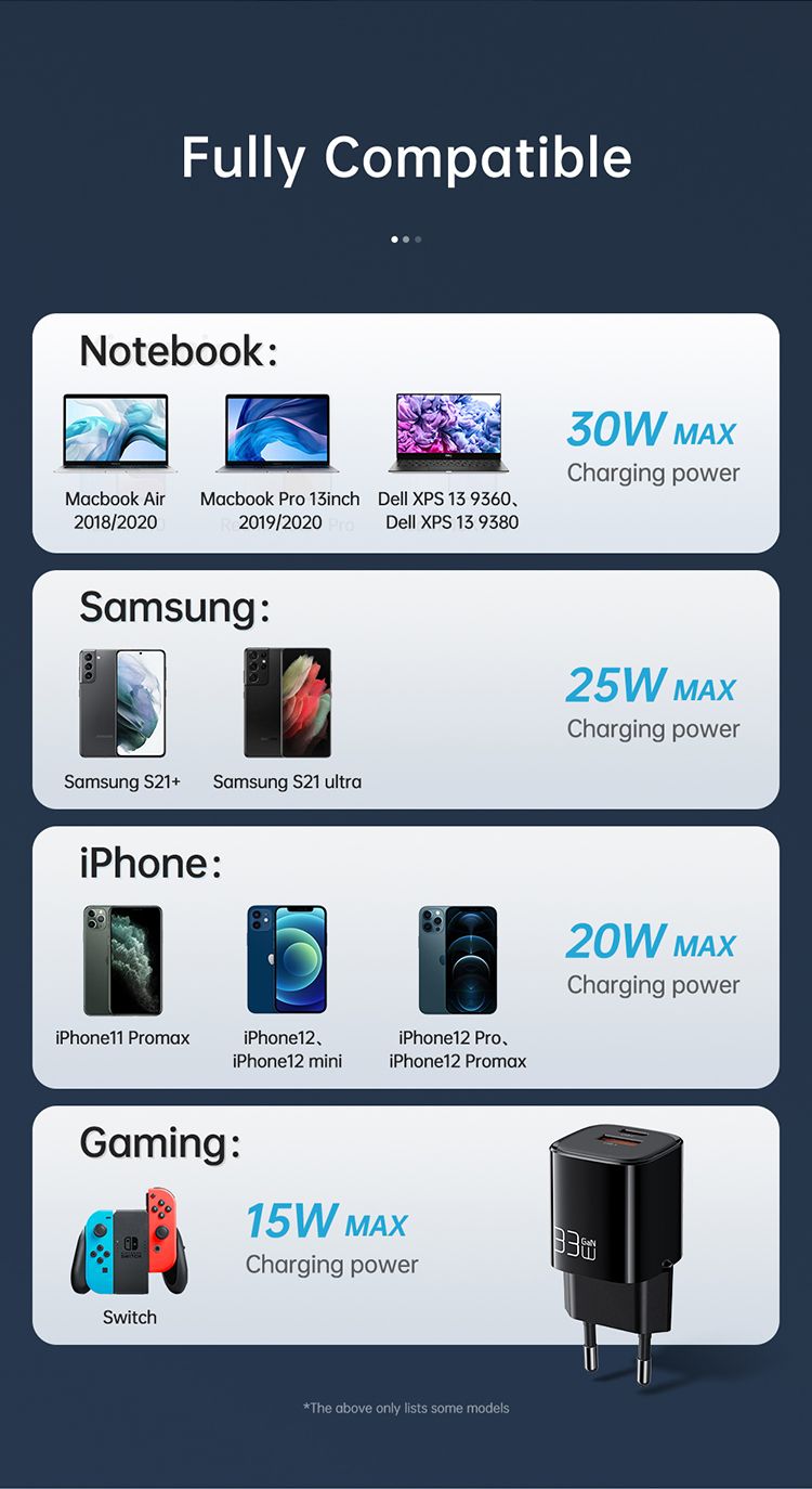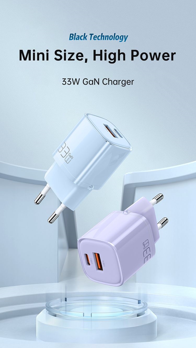 Incarcatorul Retea Dual Port USB-A si Type-C Nano Series GaN Fast Charging PD, de la Mcdodo are un n design elegant, minimalist si cea mai recenta tehnologie GaN. Cu o putere de pana la 33 de wati si o greutate mica, il poti folosi pentru a-ti incarca nu doar smartphone-ul, ci si laptopul sau alte dispozitive.